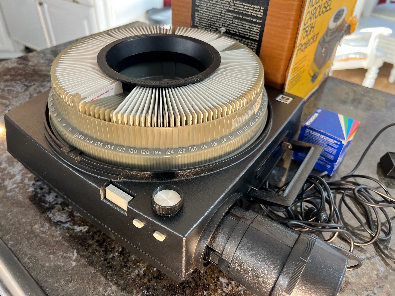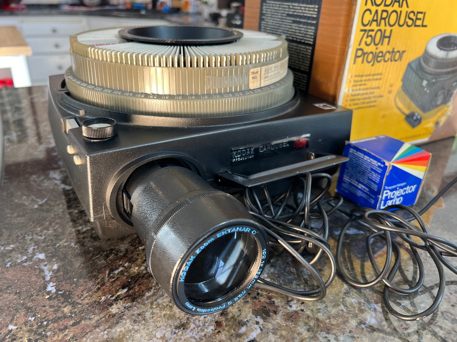 Vintage Kodak Carousel 750H Slide Projector w/ Box, Tray, Extra Lamp Nostalgic