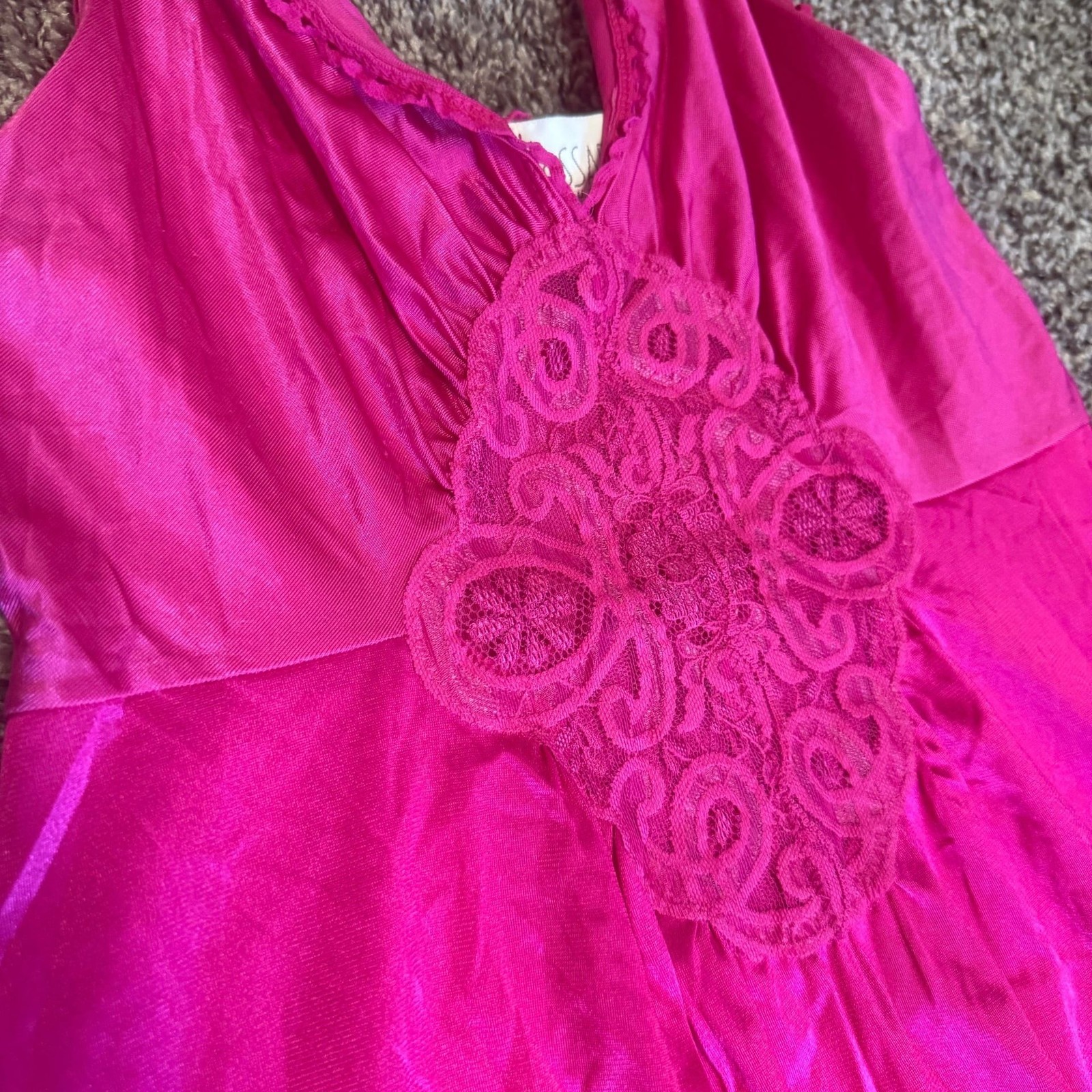 как выглядит Vintage Vassarette Hot Pink Nylon Nightgown with Lace Bust Detail фото