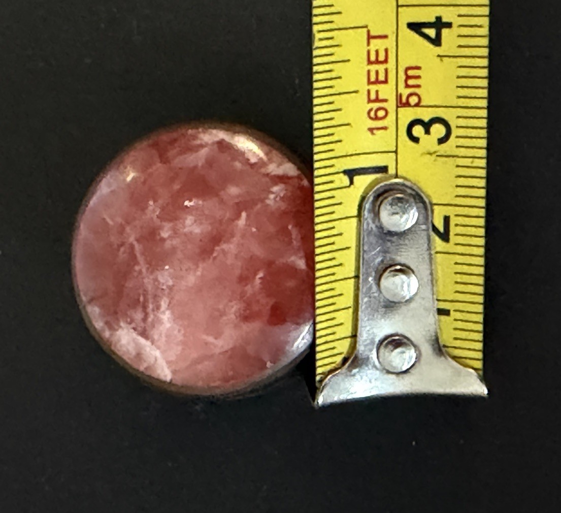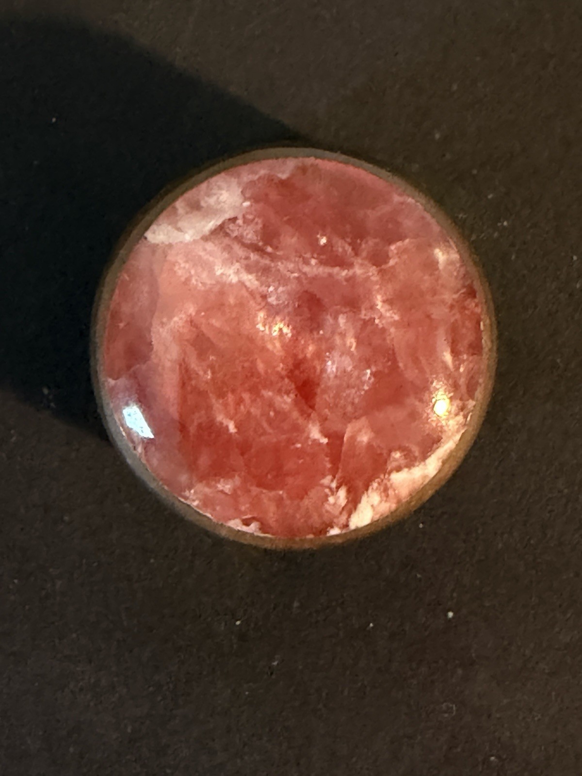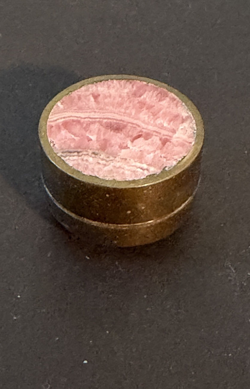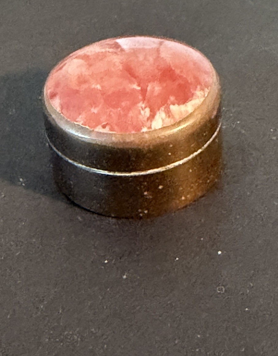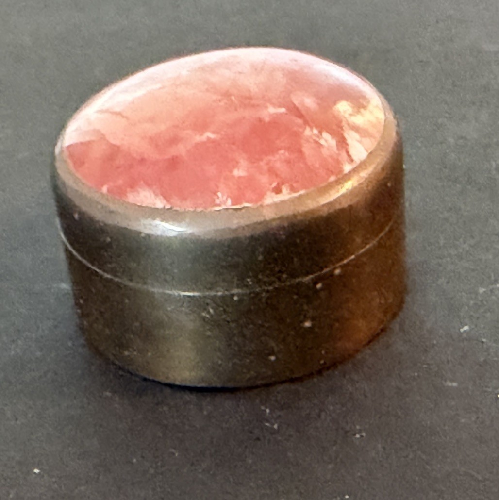 Carved Gemstone Rhodochrosite Trinket Pill Box Antique Vintage Snuff 2 Side Pink