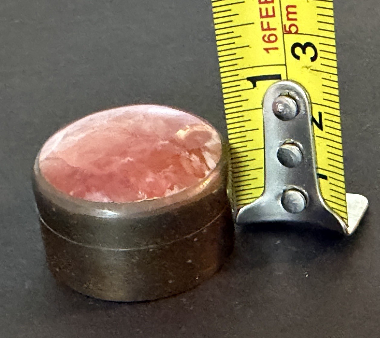 как выглядит Carved Gemstone Rhodochrosite Trinket Pill Box Antique Vintage Snuff 2 Side Pink фото