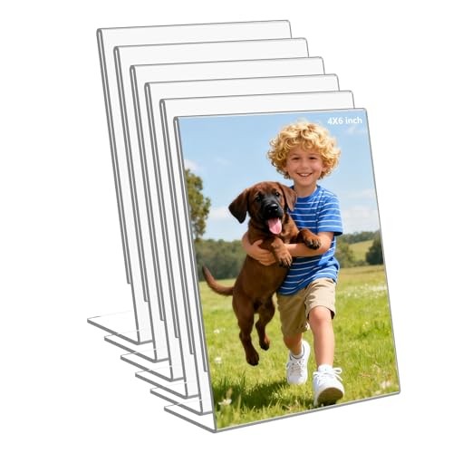 6 Pack 4x6 Inch Clear Acrylic Self Standing Picture Frames,Clear Photo Frame