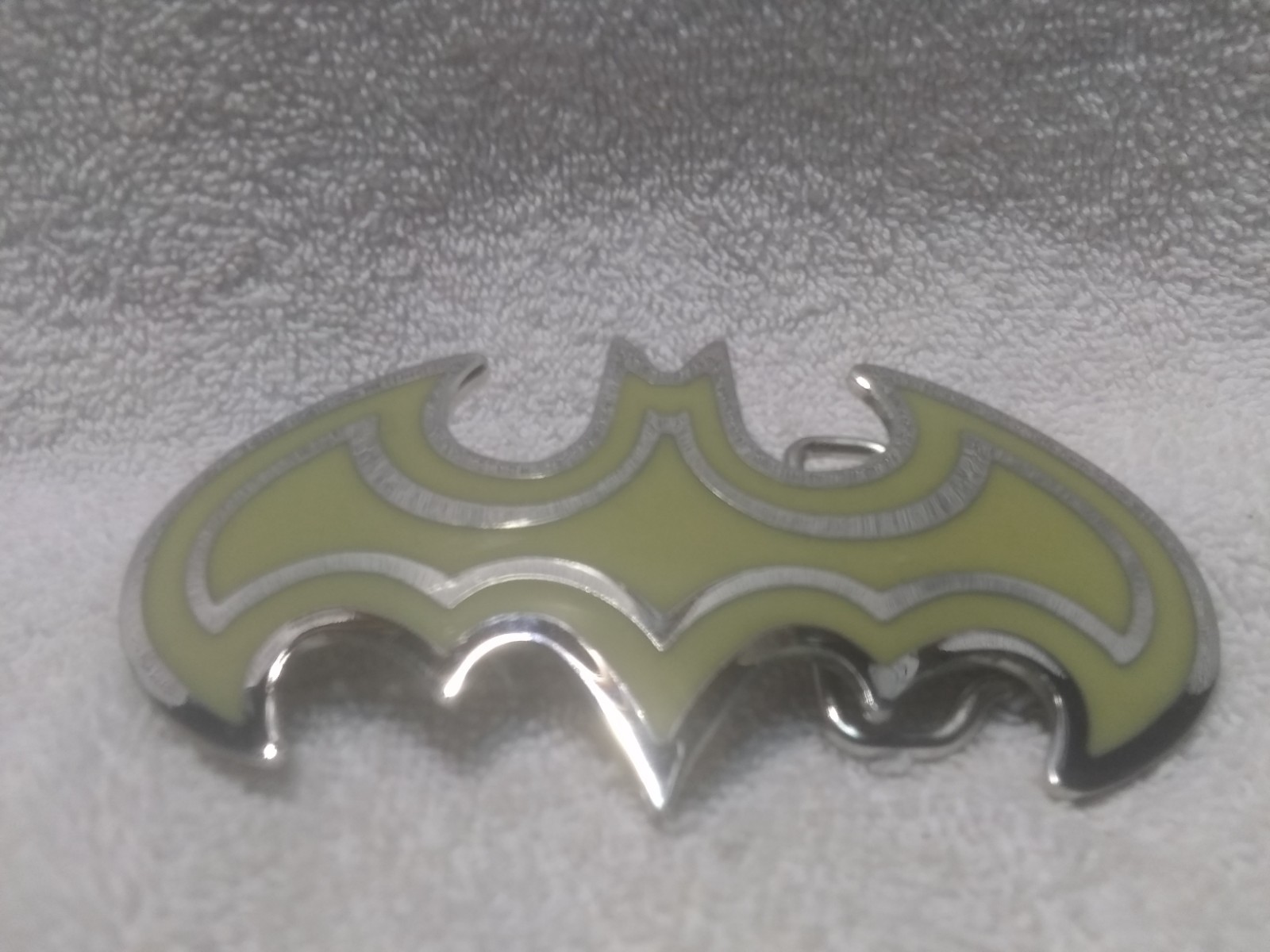 как выглядит Silver Glow In The Dark Batman Shape Belt Buckle Wide Cutout Great Condition фото