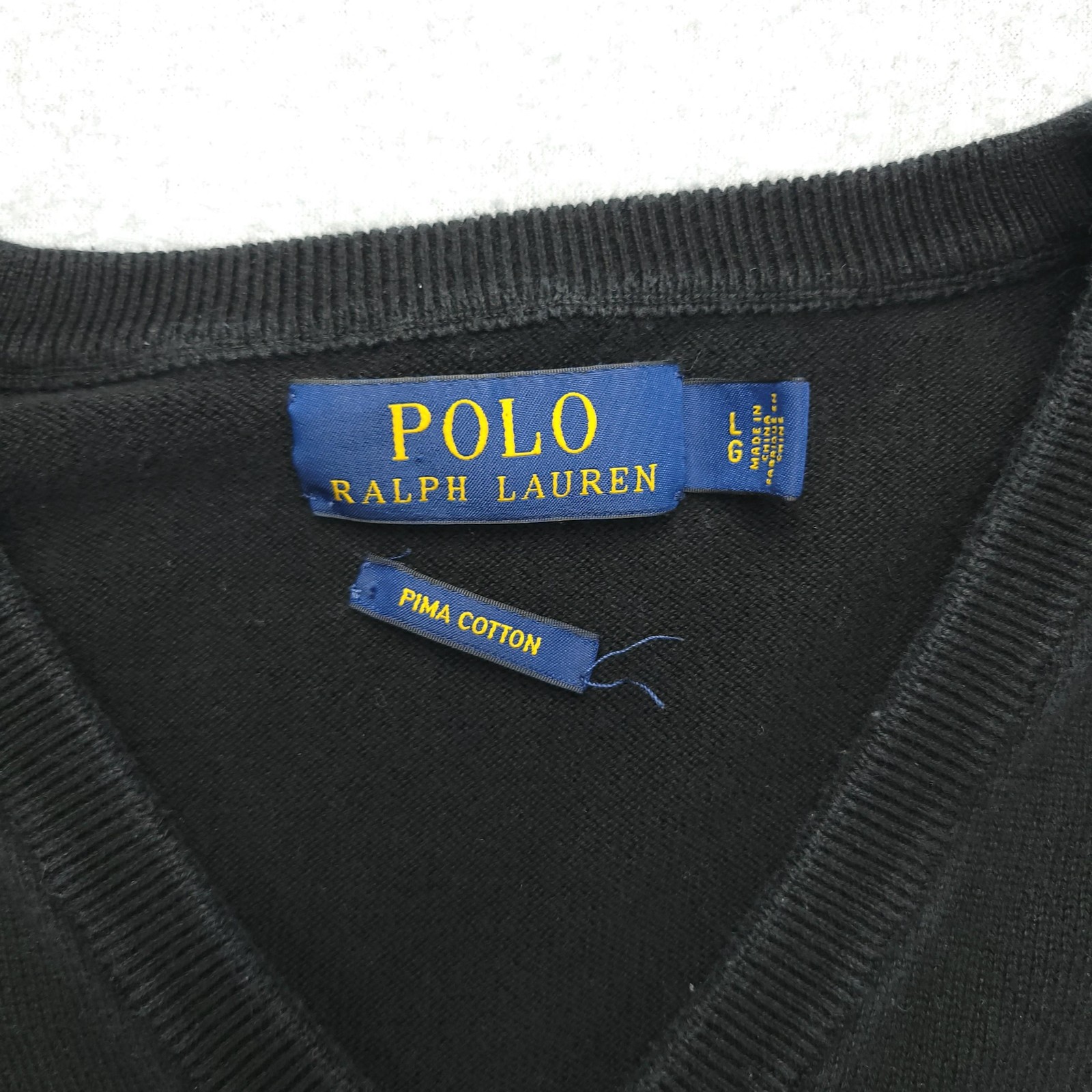 Polo Ralph Lauren Sweater Mens Large Black Pima Cotton V Neck Knit Pullover