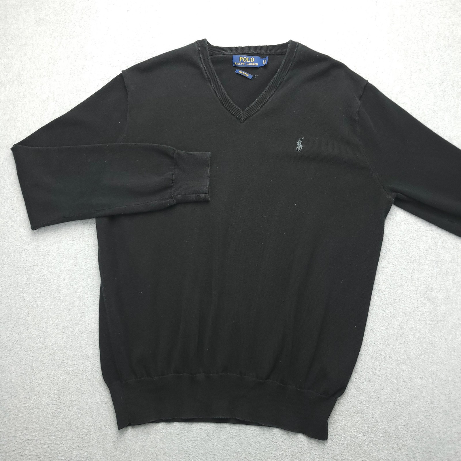 как выглядит Polo Ralph Lauren Sweater Mens Large Black Pima Cotton V Neck Knit Pullover фото