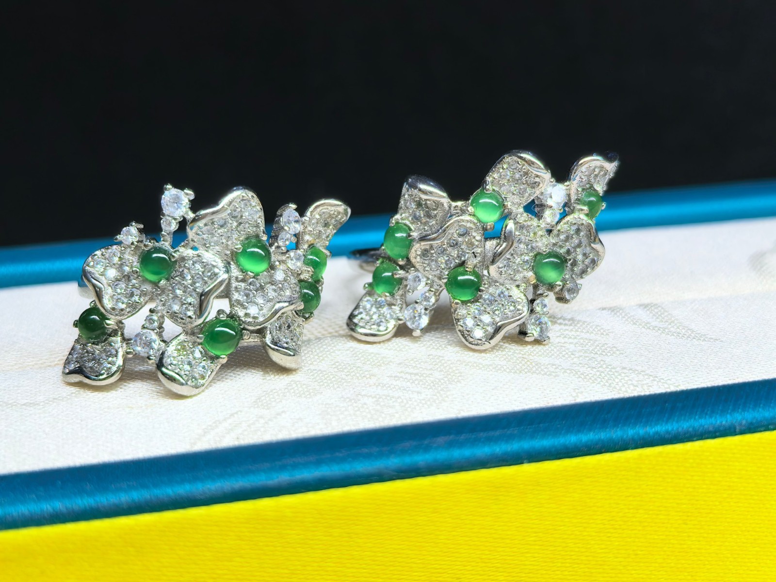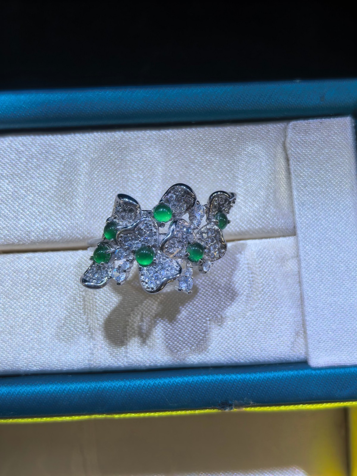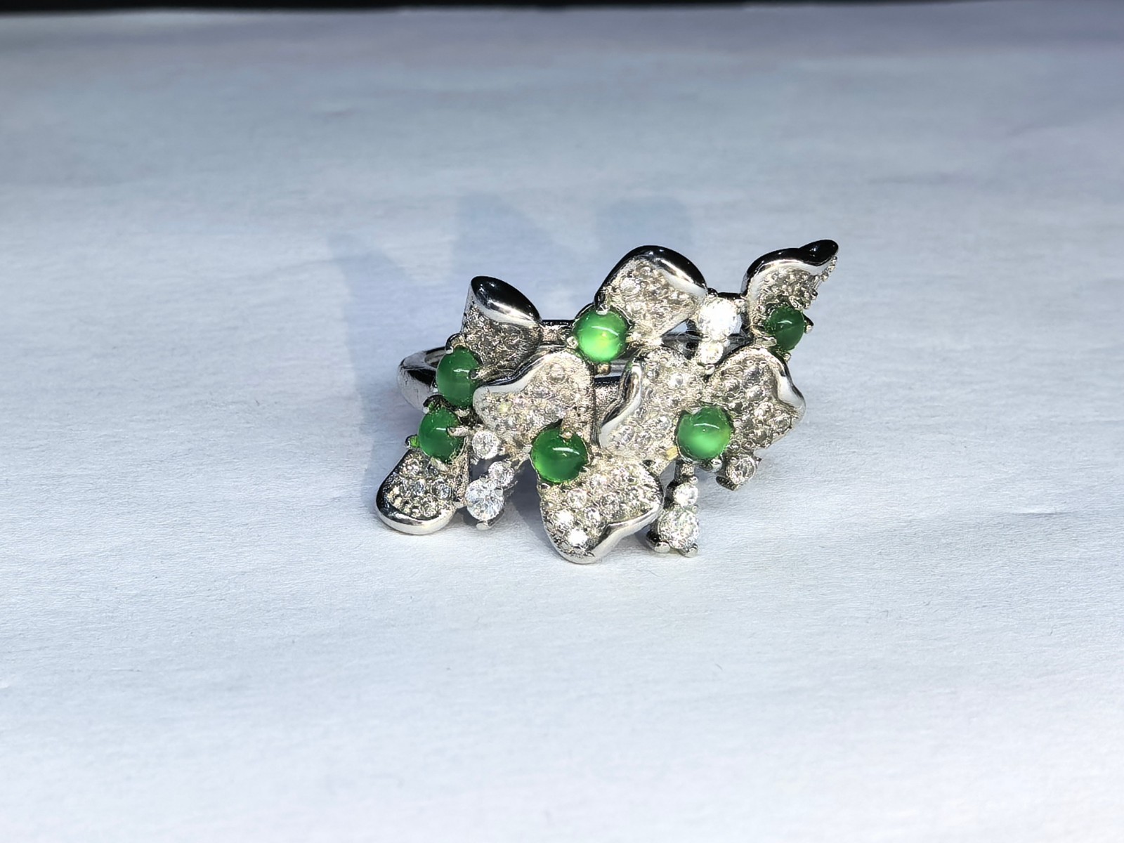 как выглядит Adjustable Natural Green Jadeite Bow Ring 925 Silver Handmade фото