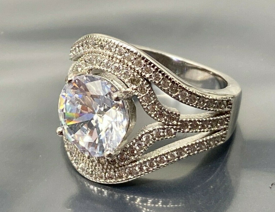 как выглядит Vintage Sterling Silver White Crystal band Ring size 5 фото