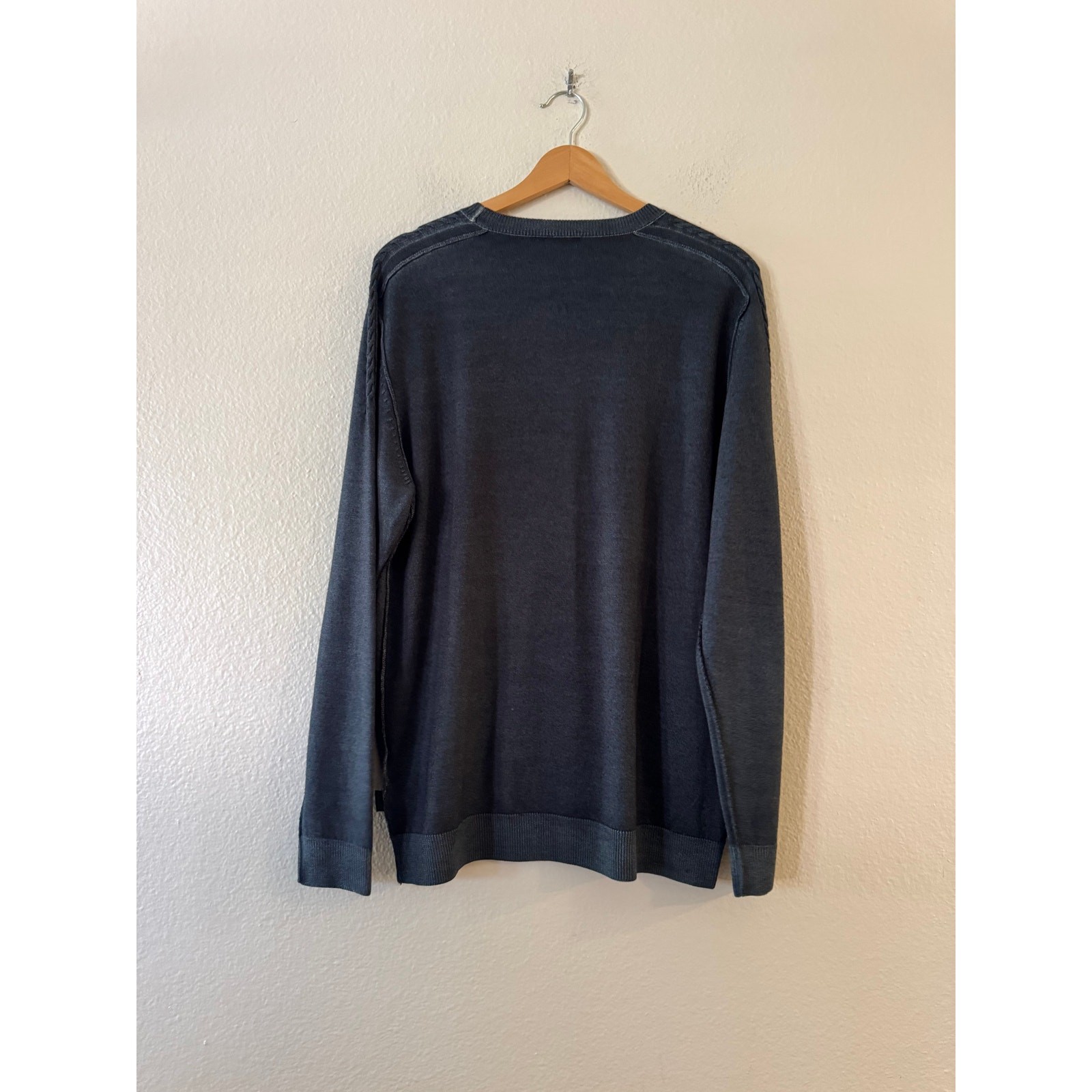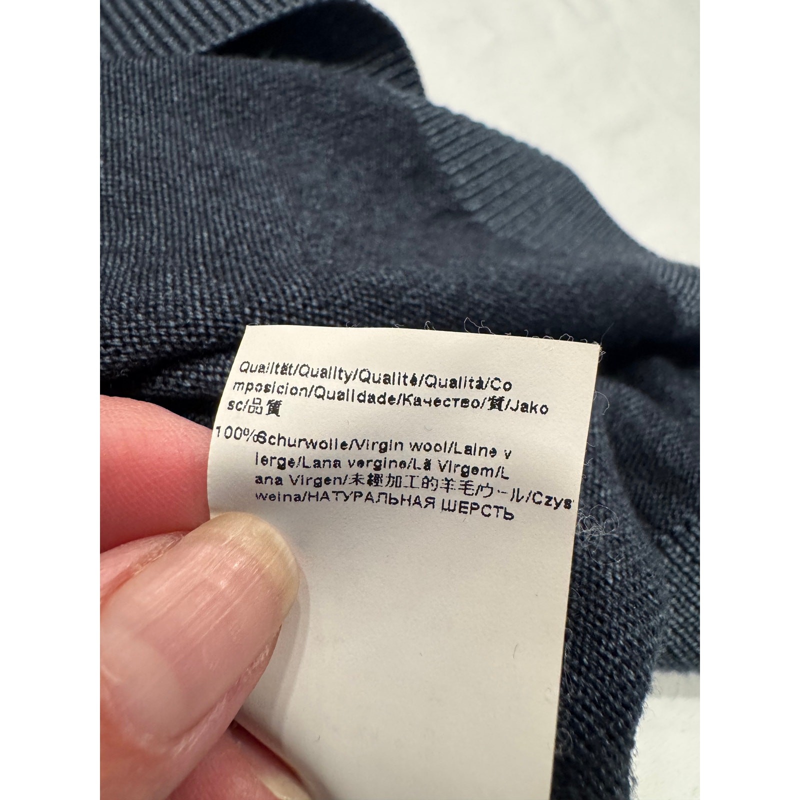 как выглядит Hugo Boss Mens Crew 100 Virgin Wool Sweater L Navy Regular Fit LS Pullover фото