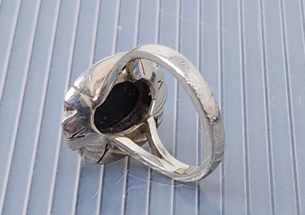 как выглядит Vintage Sterling Silver Mexico Black Jade Oval Ring size 6 фото