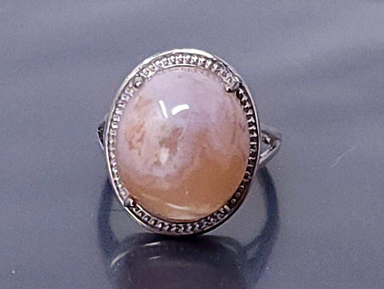 как выглядит Vintage Sterling Silver Agate Oval Band Ring size 7 фото