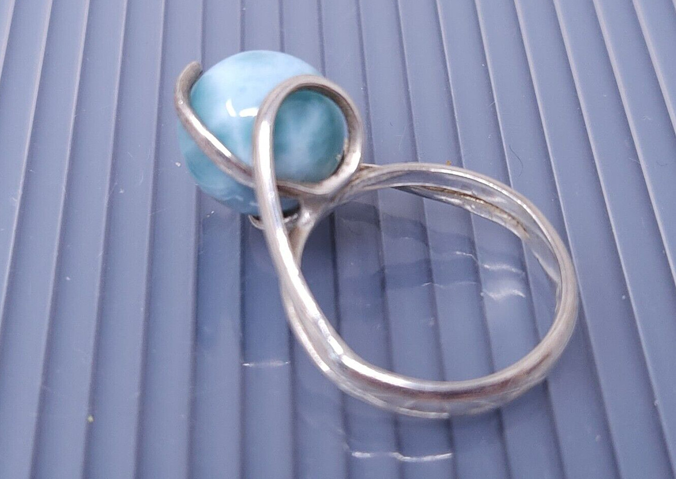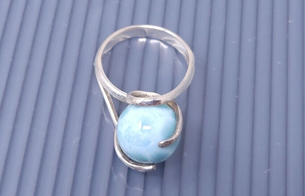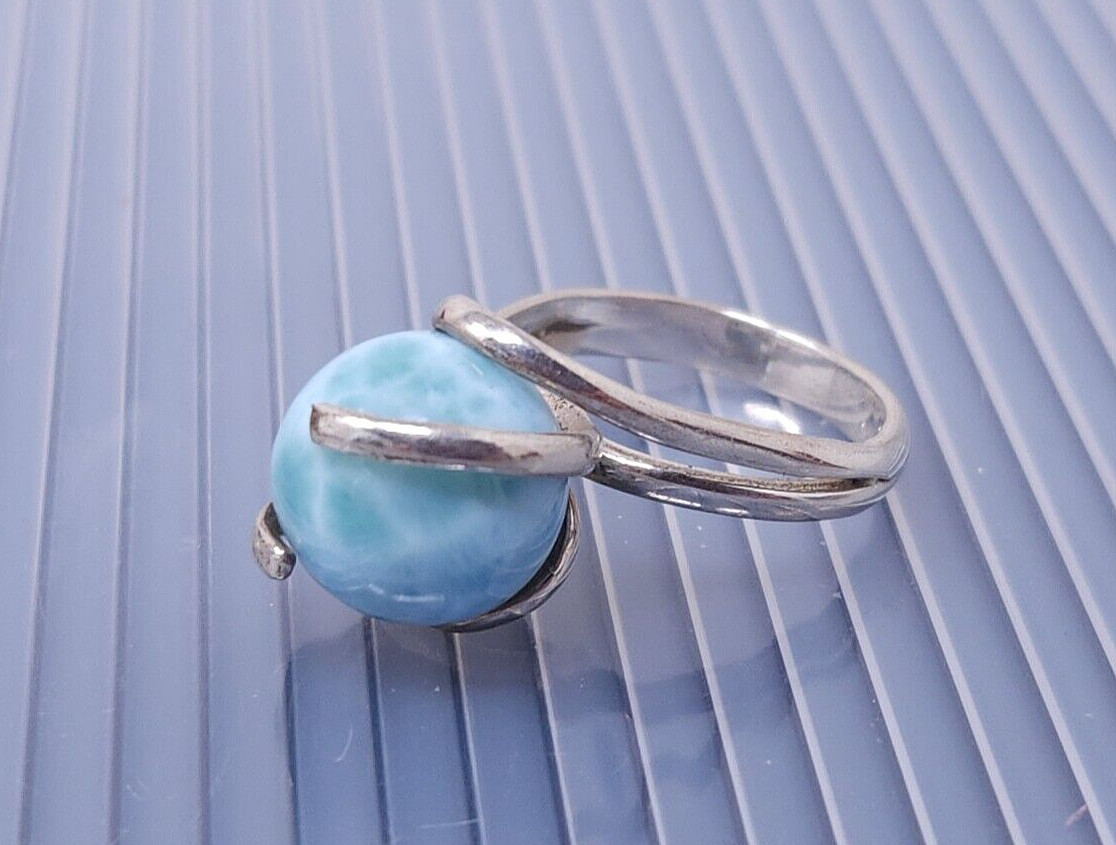 Vintage Sterling Silver Blue Larimar Ball Band Ring size 7