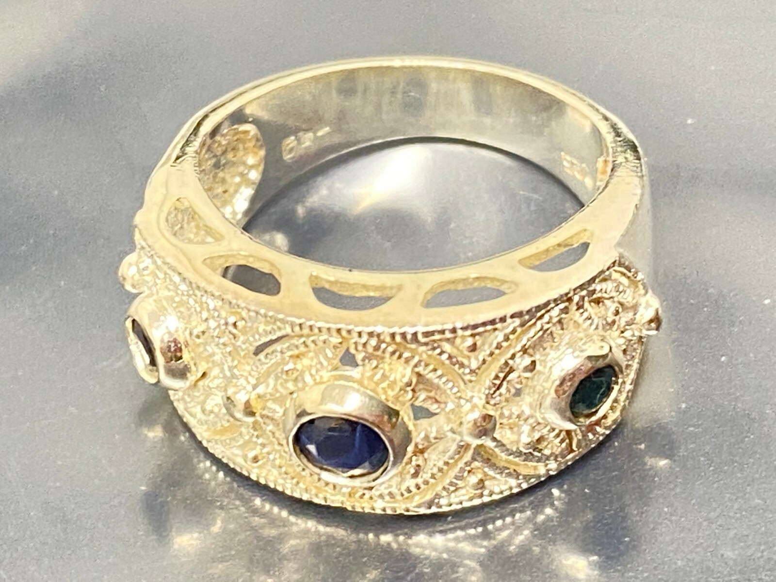 как выглядит Vintage Sterling Silver Dark Blue CZ band Ring size 6 фото