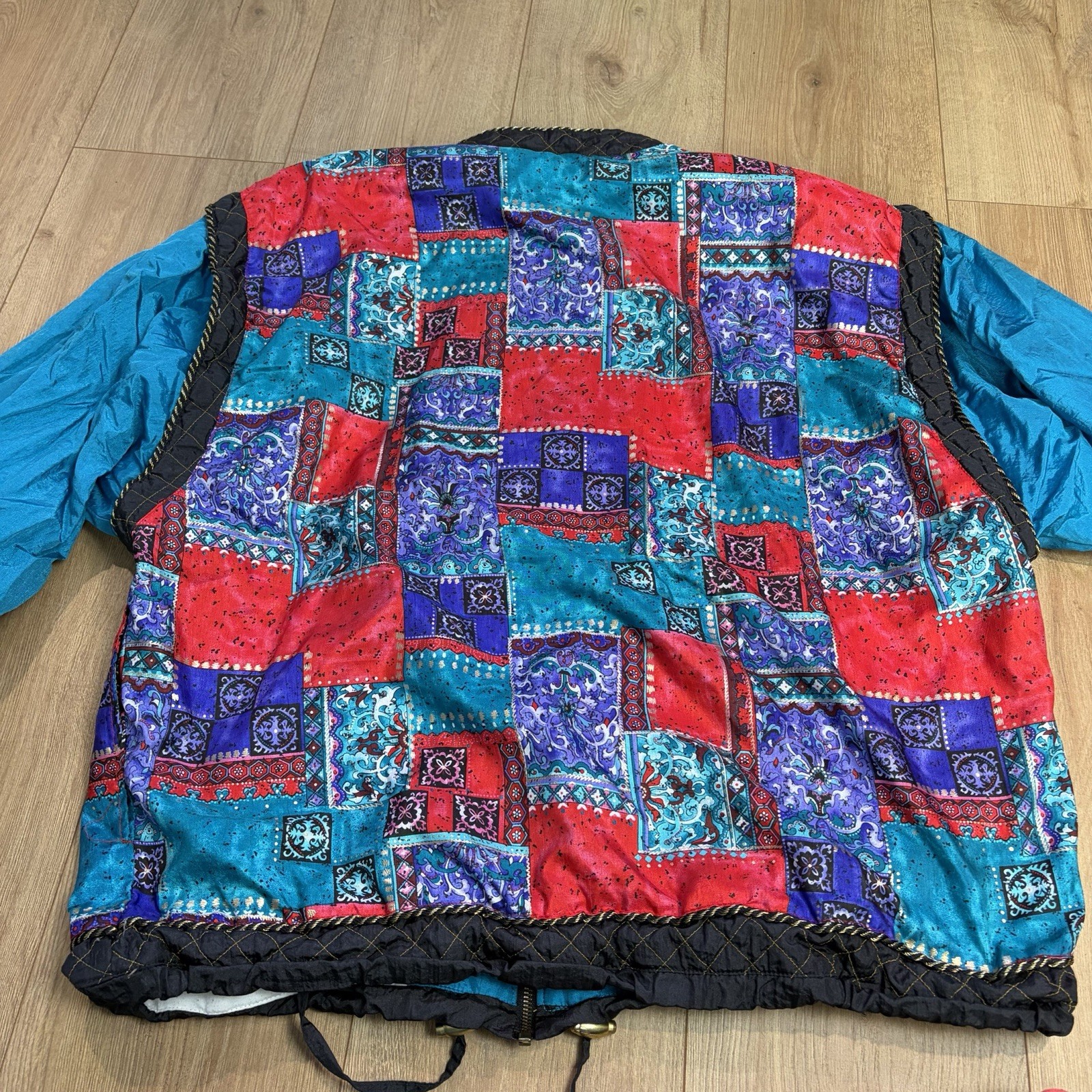 как выглядит VTG Lavon Womens Multi Color Nylon Jacket Size XL 80s 90s Windbreaker фото