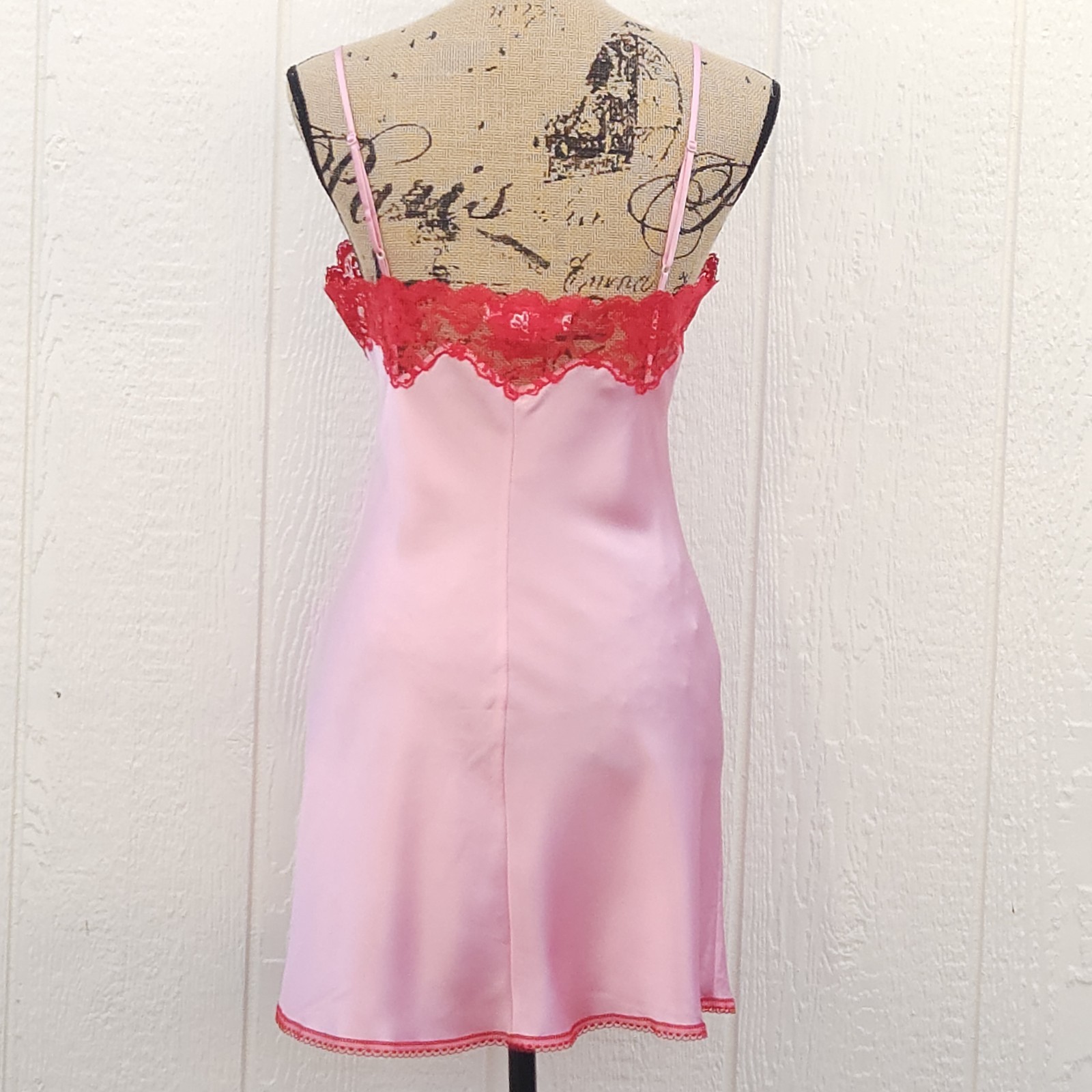 Vtg Victoria's Secret Satin Mini Slip S Pink Lace Coquette Valentine Dainty Y2K