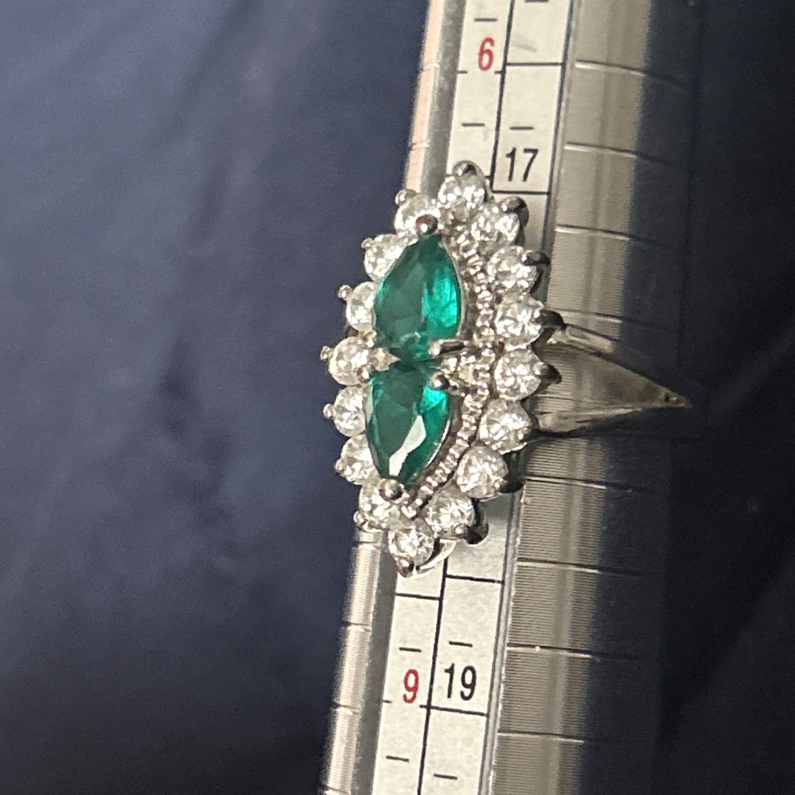 как выглядит sterling silver rings With Green And White Glass Stones Size 7 3/4 фото