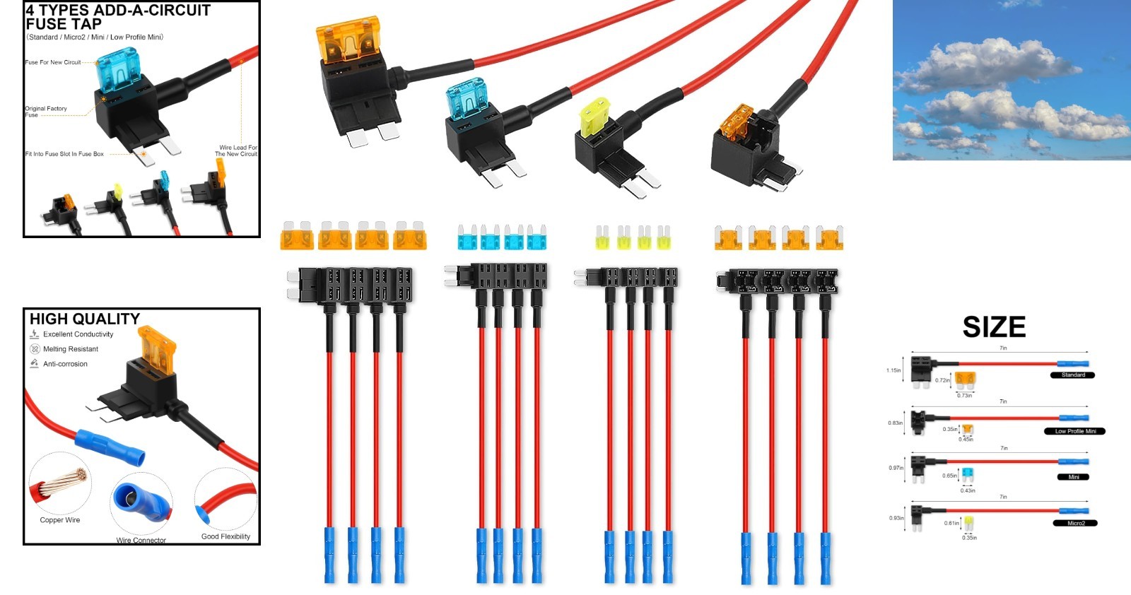 как выглядит 12V Add A Circuit Fuse Tap Kit - 16 Pack with Standard, Mini Low Profile Taps фото