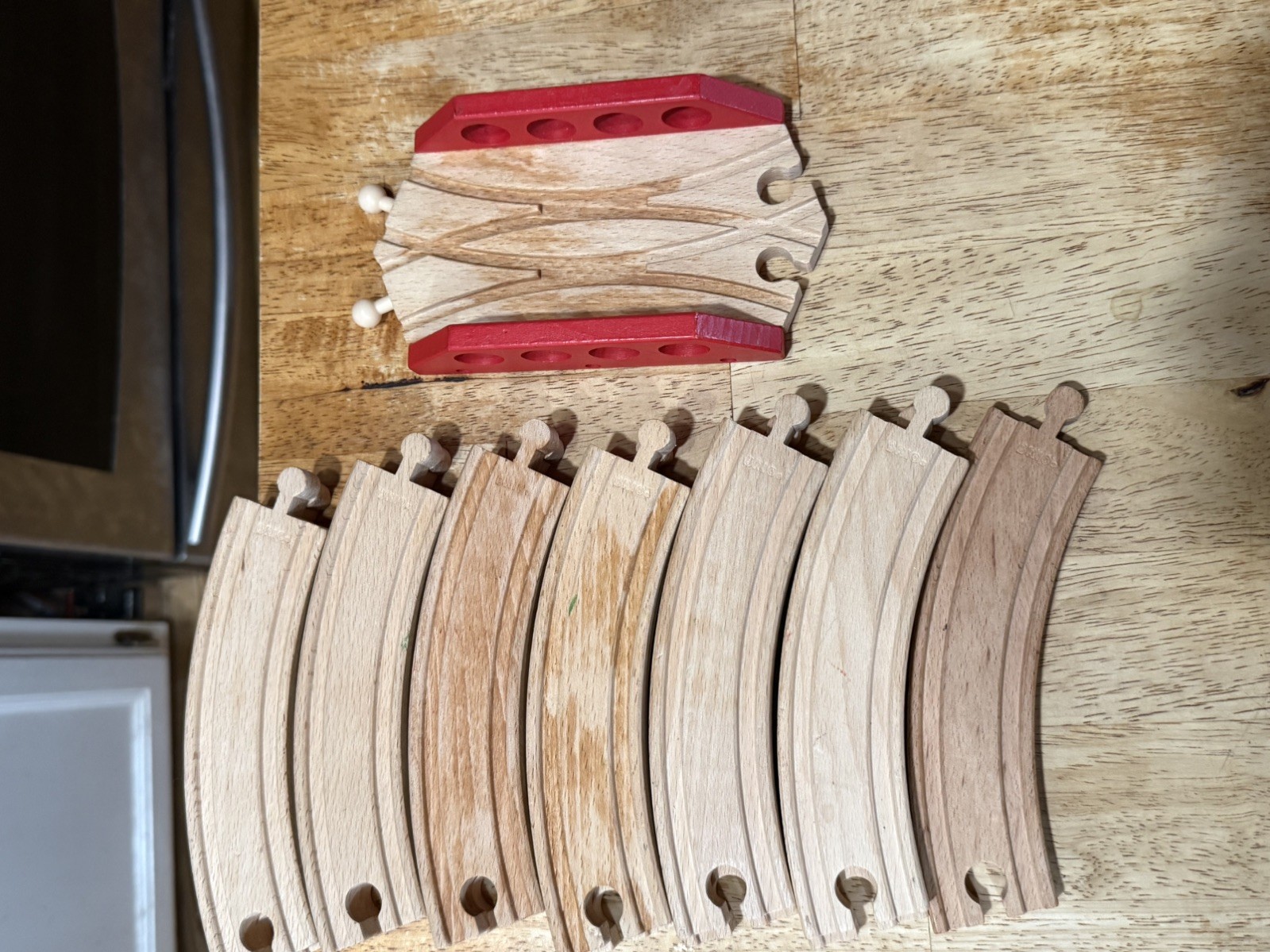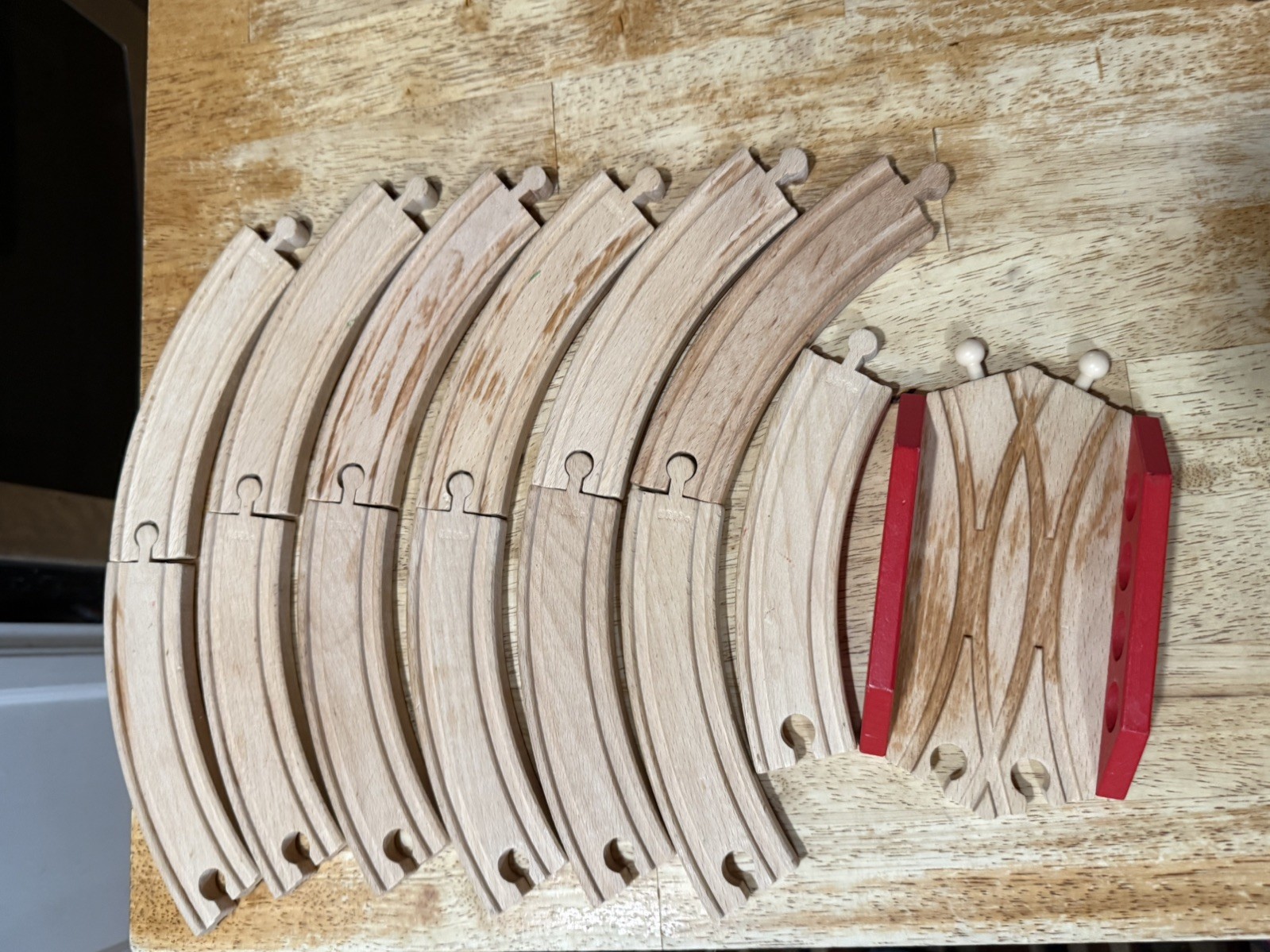 BRIO Wooden Tracks LOT 14 Spare Pieces3028-8in Curve and Crossing Bridge
