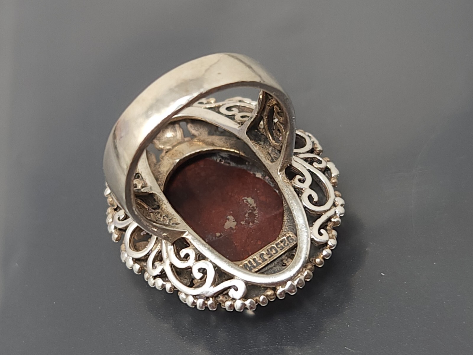 как выглядит Vintage Sterling silver Jasper Oval Wide band Ring size 7 фото