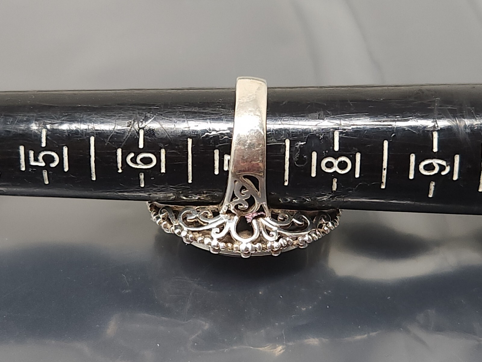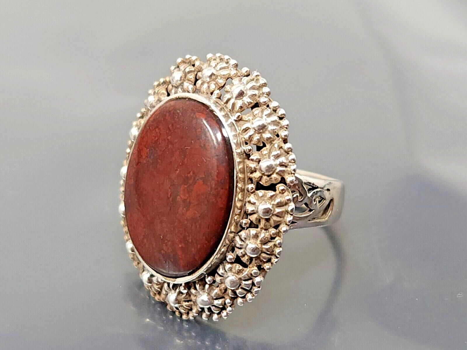 Vintage Sterling silver Jasper Oval Wide band Ring size 7