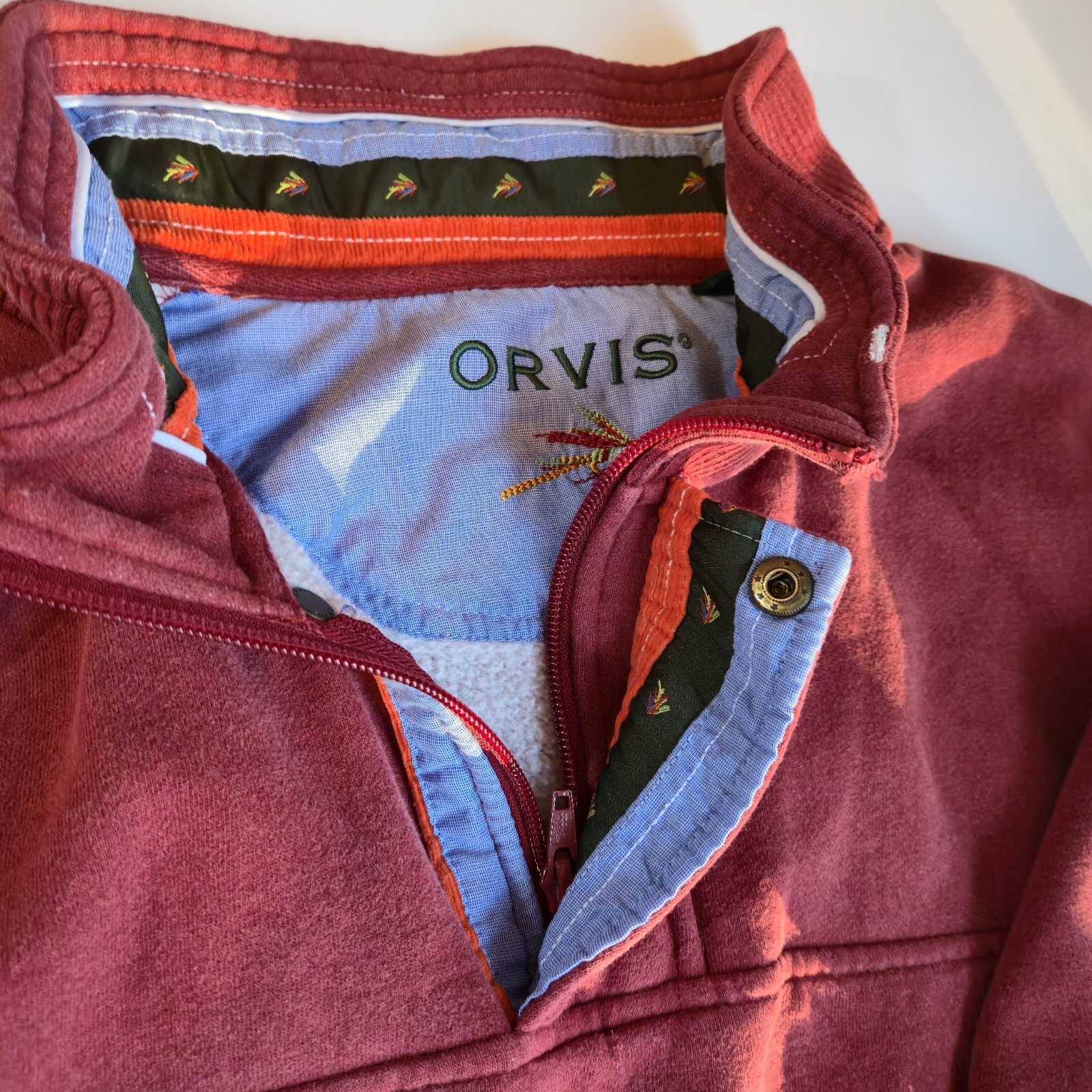 Orvis Men s Pullover Sweatshirt Pre-Owned Burgundy Red Quarter Zip SZ XXL