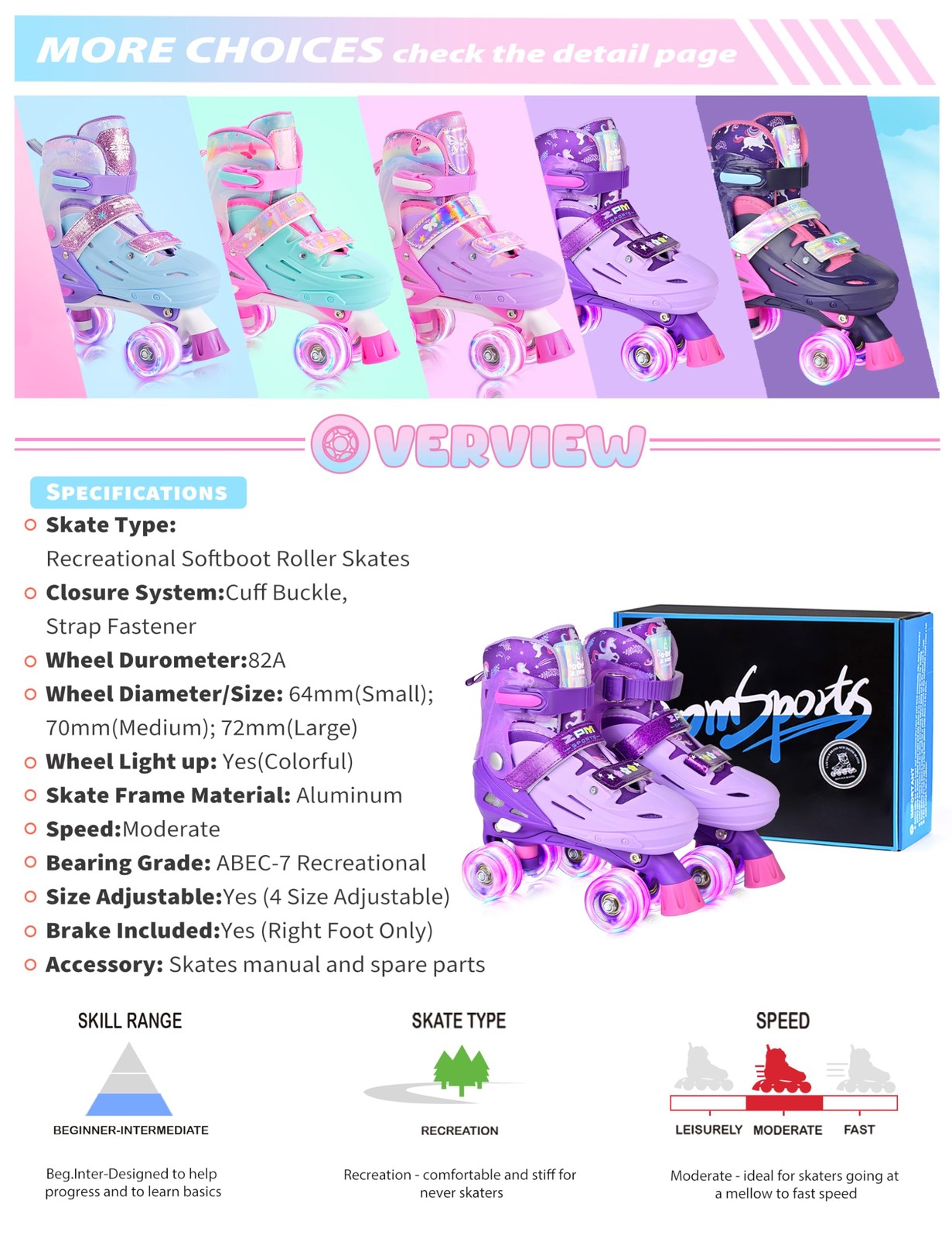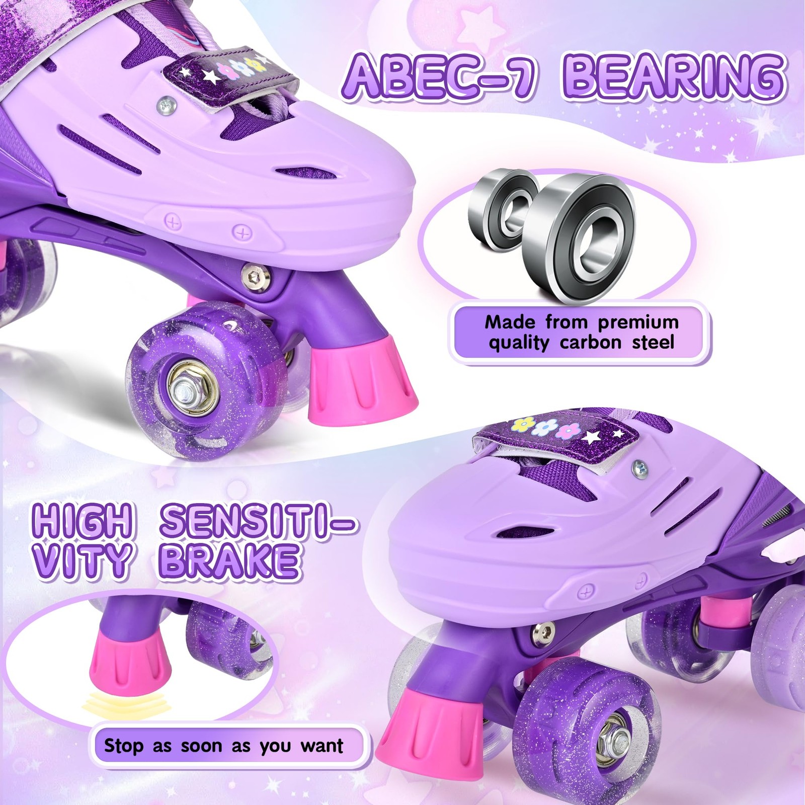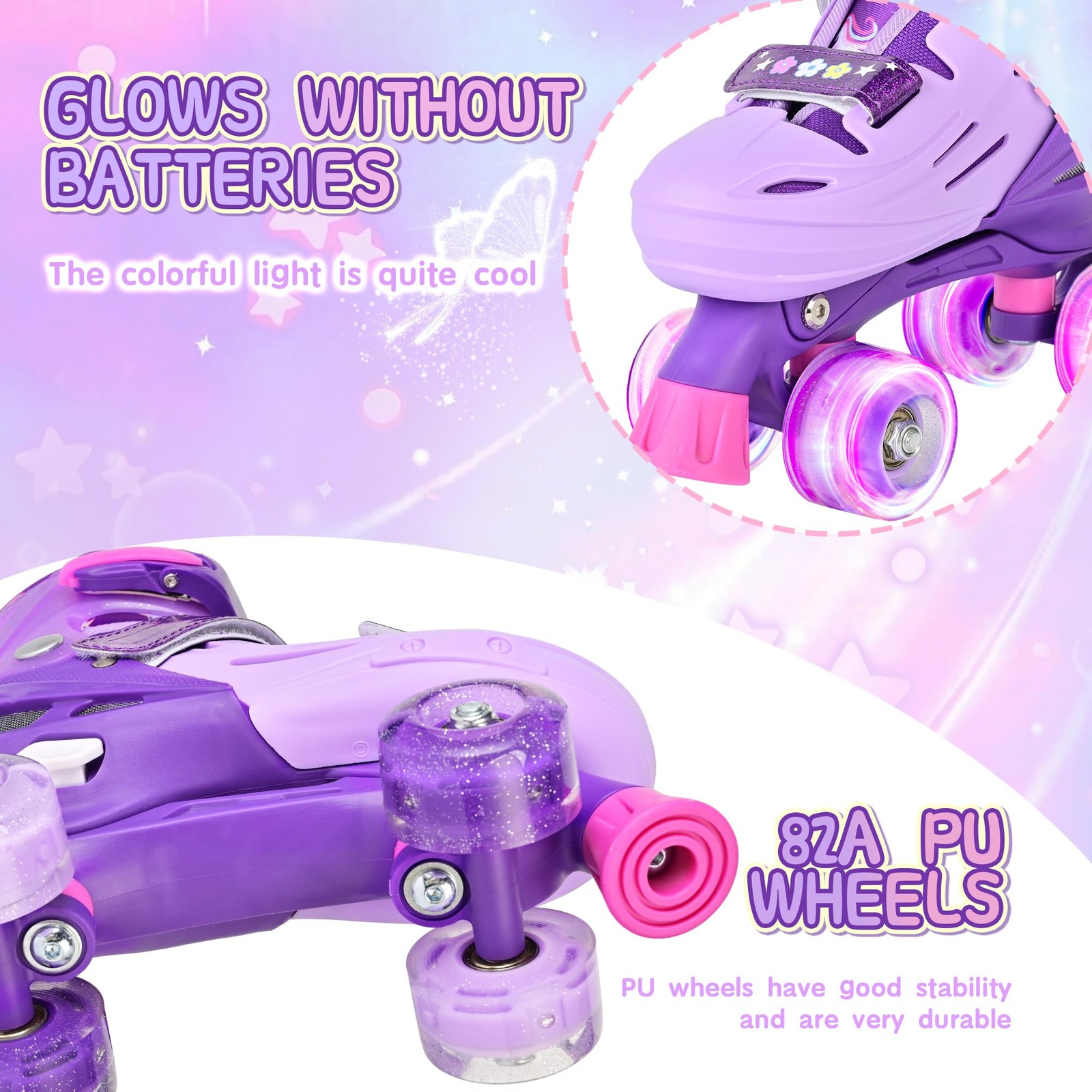 Kids Roller Skates Girls Ages 5-8 8-12 3-5 4-7 6-12 10-12 with Light Up Wheel...