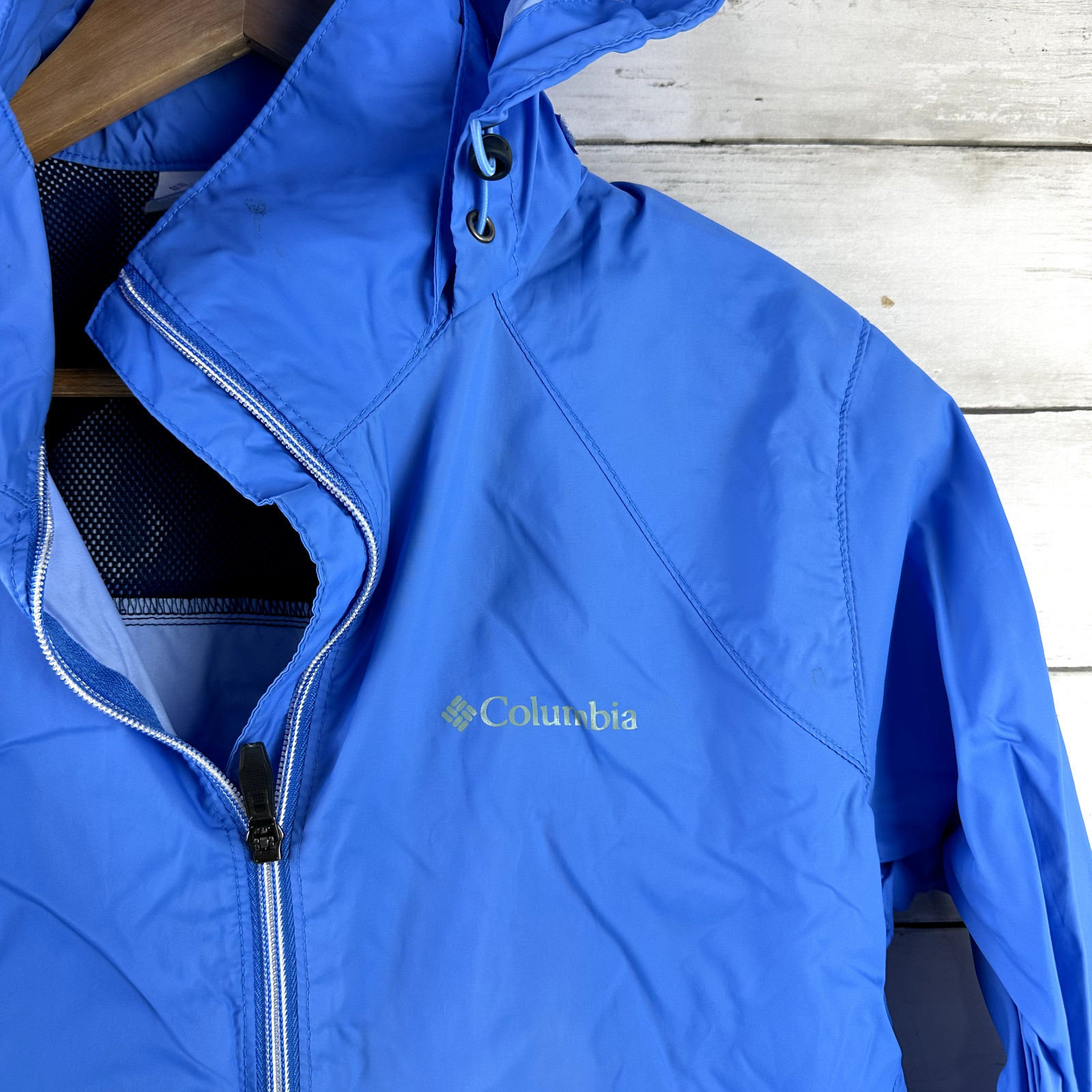 как выглядит Columbia Womens Size Medium Windbreaker Jacket Nylon Omni Tech Hooded purplish фото