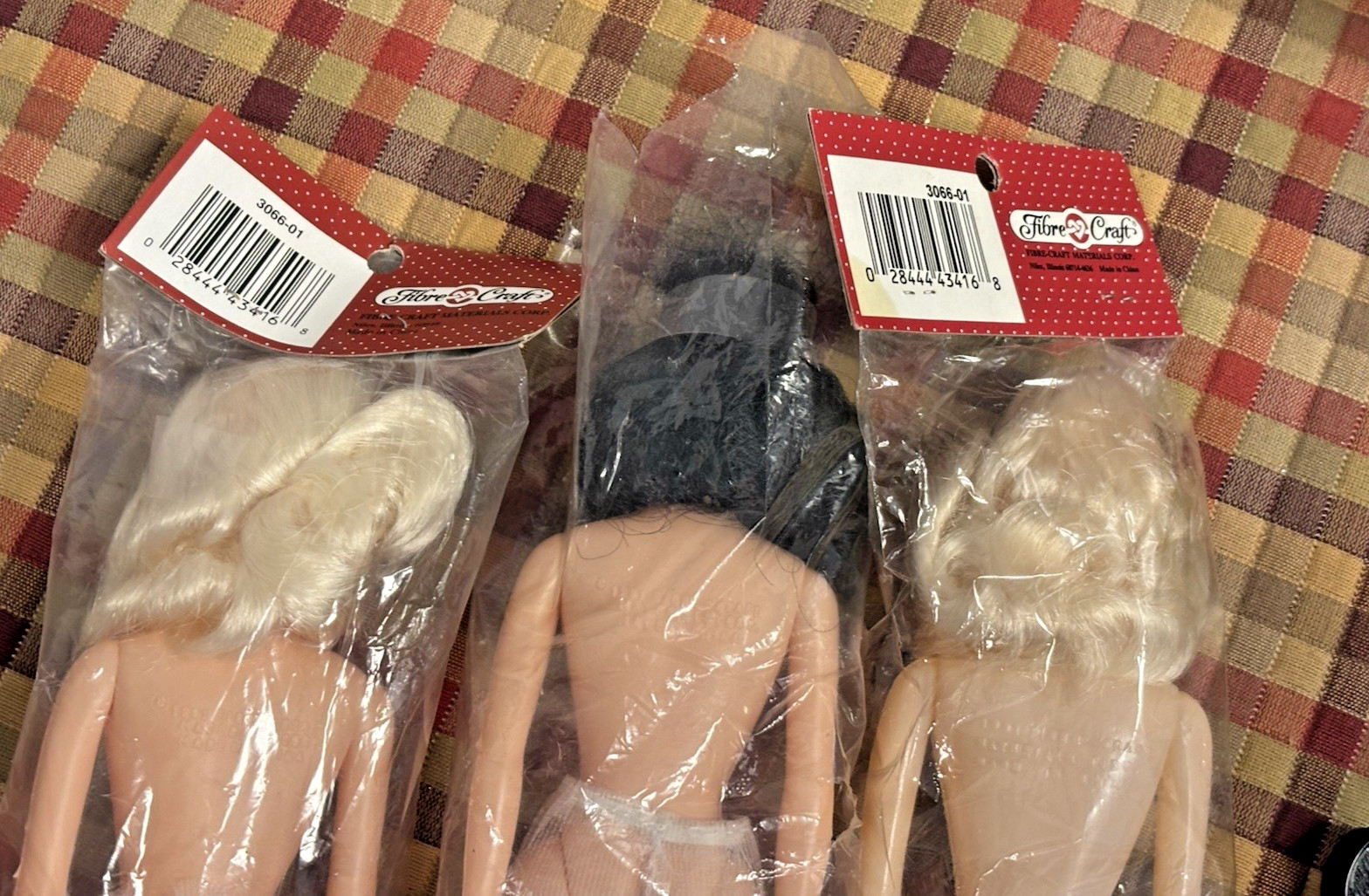 3 vintage Fibre-Craft Fashion Dolls 11 NOS blonde, brunette