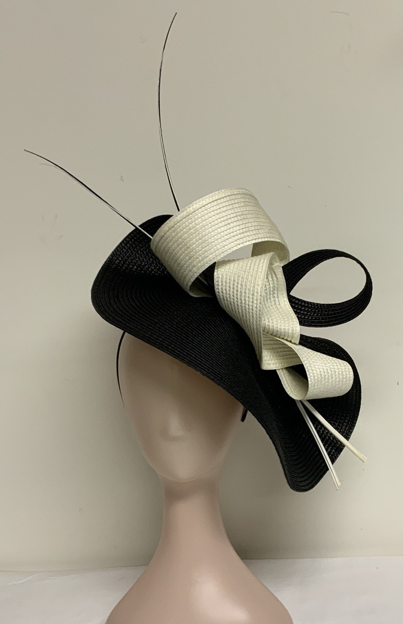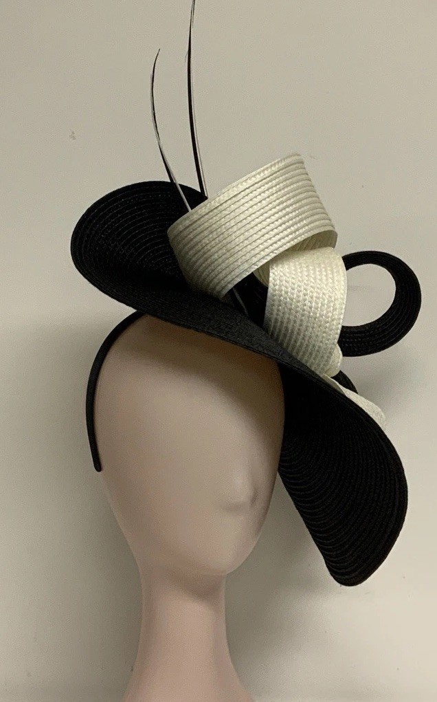 Ascot Royal Fascinator Kentucky Derby Black/Ivory Straw Texture, Headband