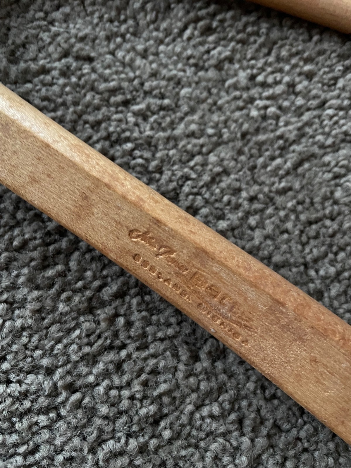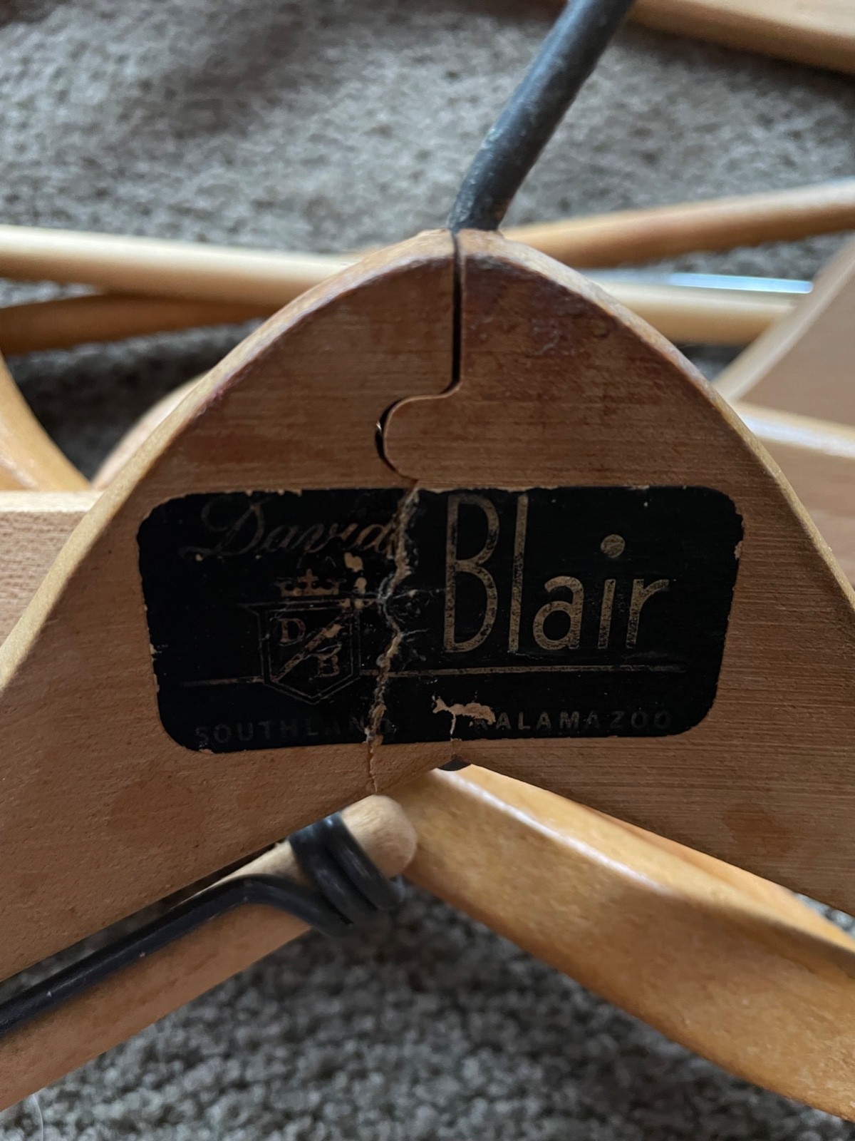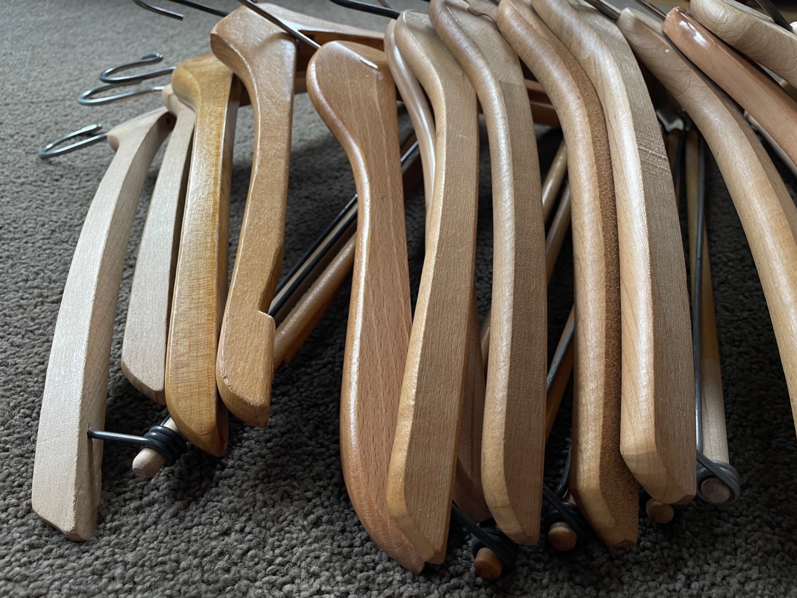 Mixed lot 14 Wooden Hangers Pants Suit Coat trousers vtg some ads Wishbone/batts