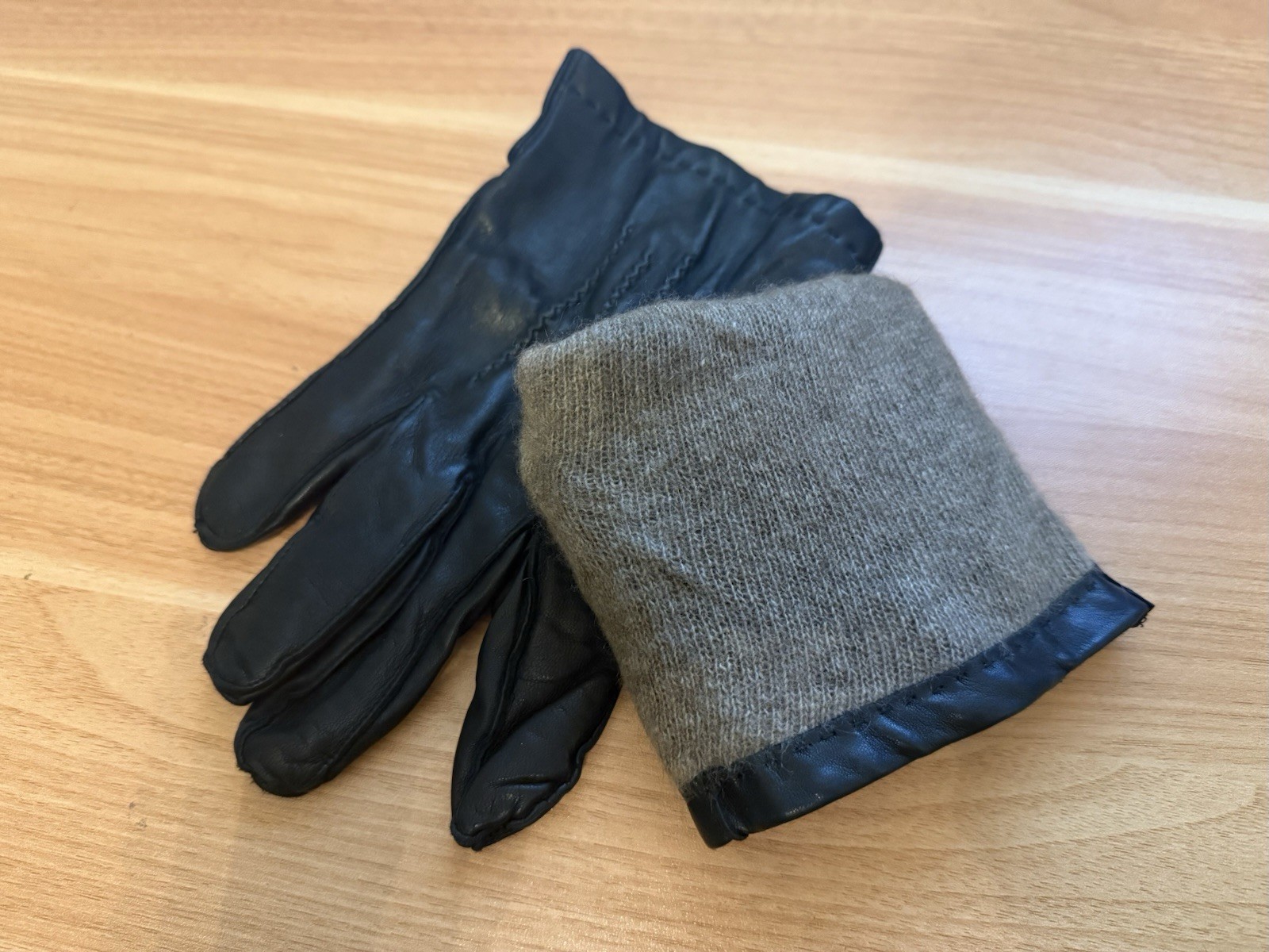 как выглядит VTG BLACK LEATHER GLOVES WARM LINED Large - EUC CLEAN фото