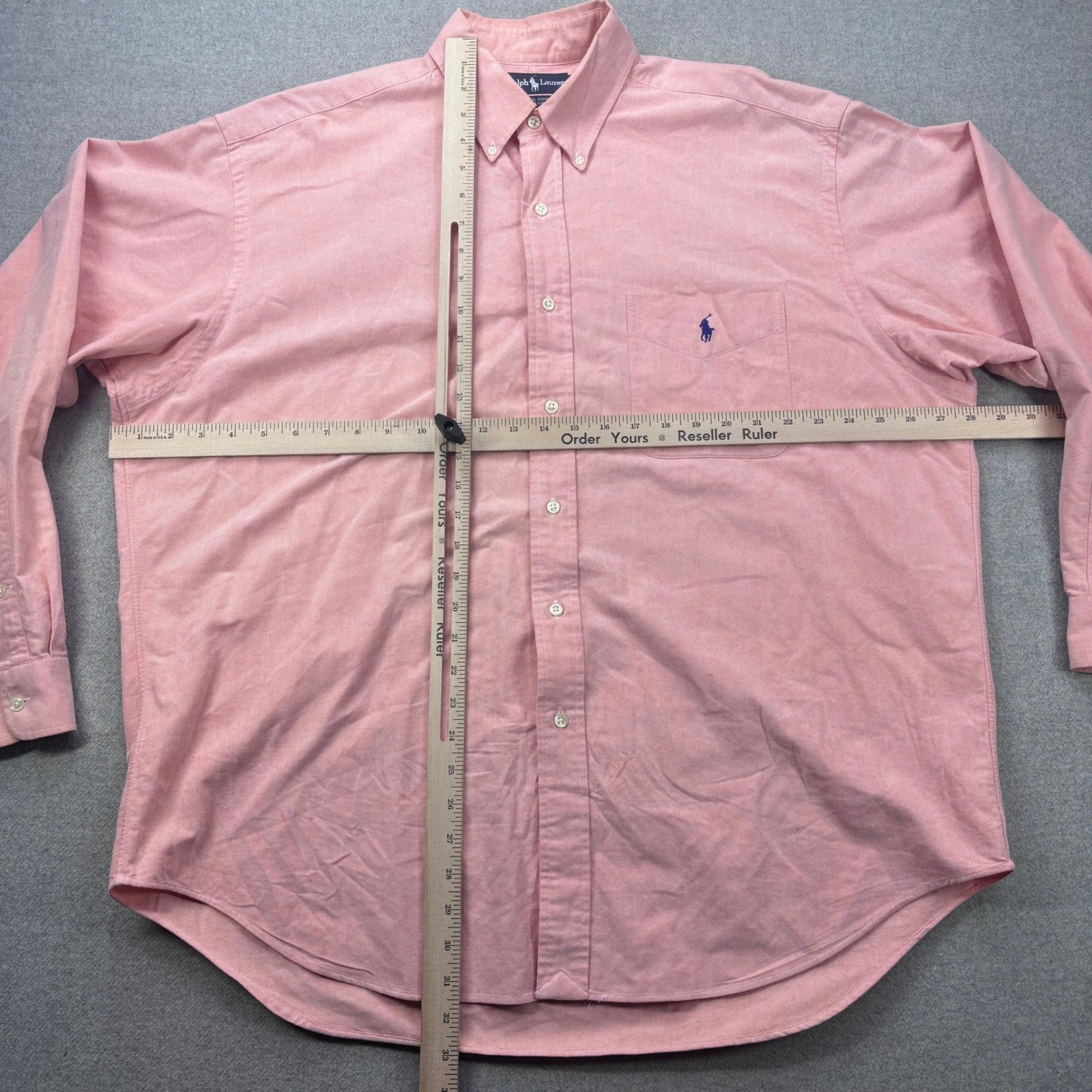 как выглядит Vintage 90s Polo Ralph Lauren The Big Shirt Mens L Pink Oxford Heavyweight FLAW фото