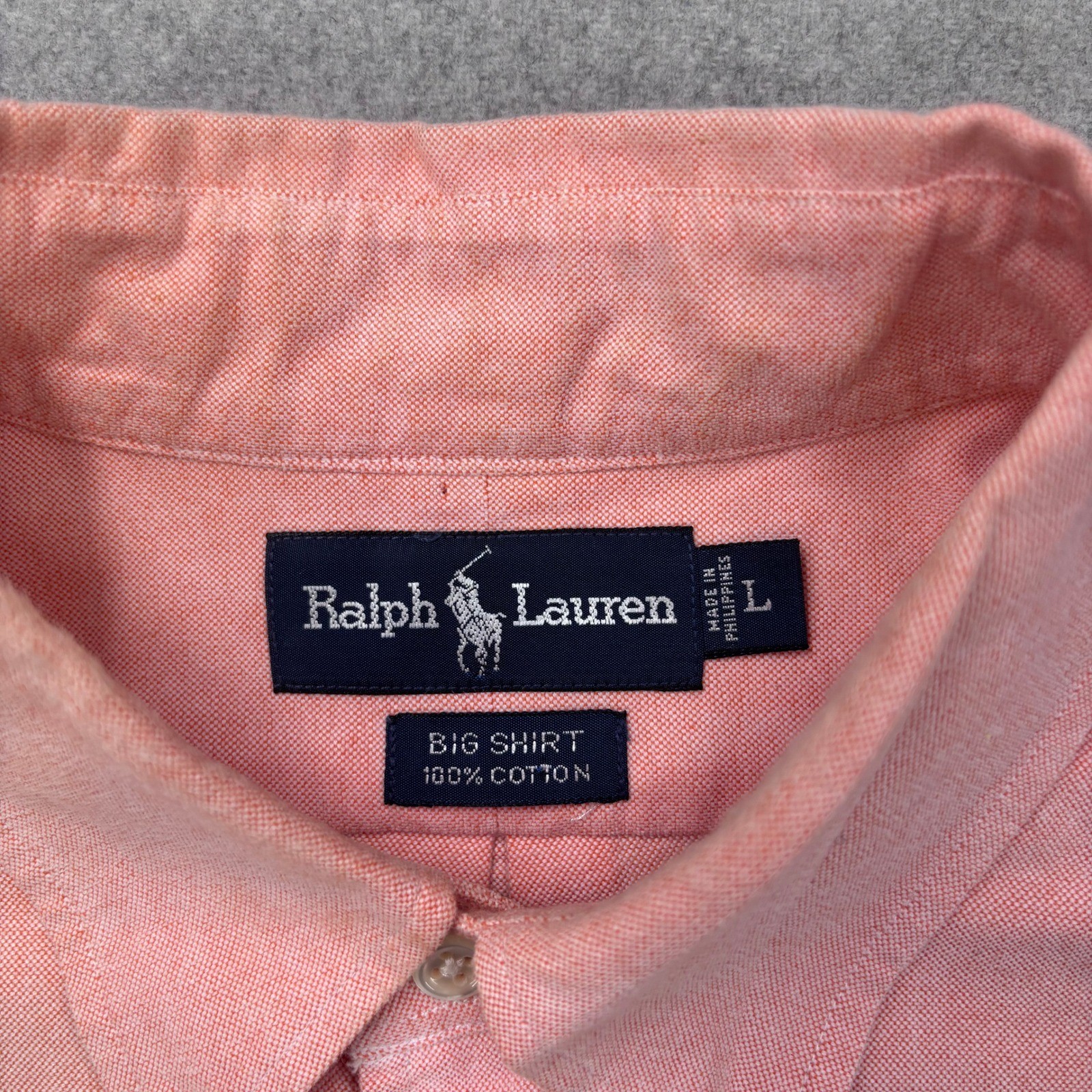 Vintage 90s Polo Ralph Lauren The Big Shirt Mens L Pink Oxford Heavyweight FLAW