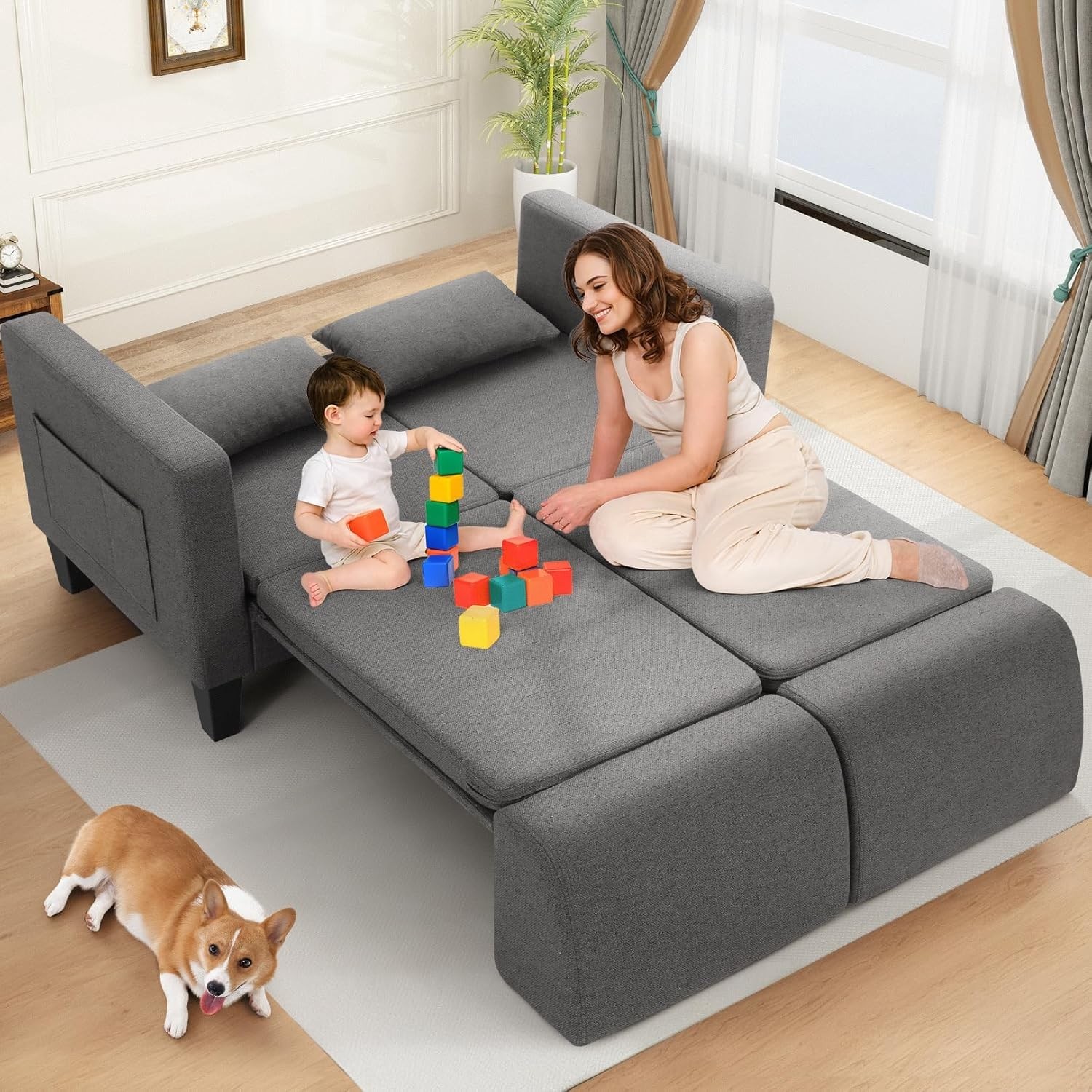 58 6-in-1 Convertible Sofa Bed Loveseat Sleeper with Pull Out Couch Bed Modern