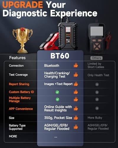 Bluetooth Battery Tester 12V BT60, Car Load Tester, Cranking Charging System