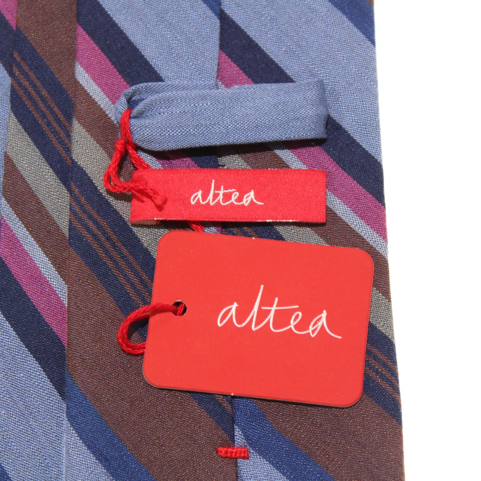 как выглядит Altea NWT Neck Tie in Blues/Brown/Pink Stripes Linen/Silk Blend Made in Italy фото