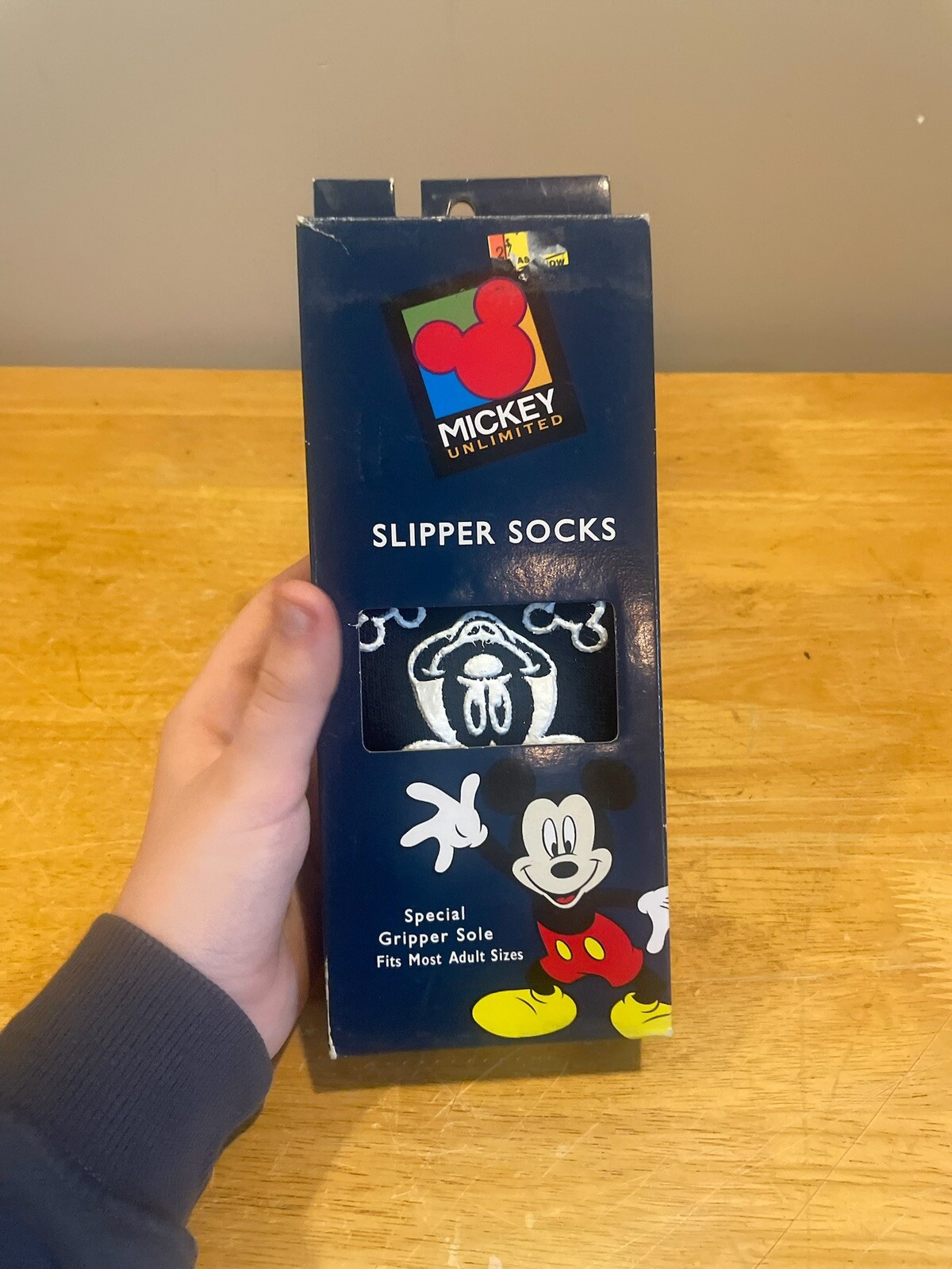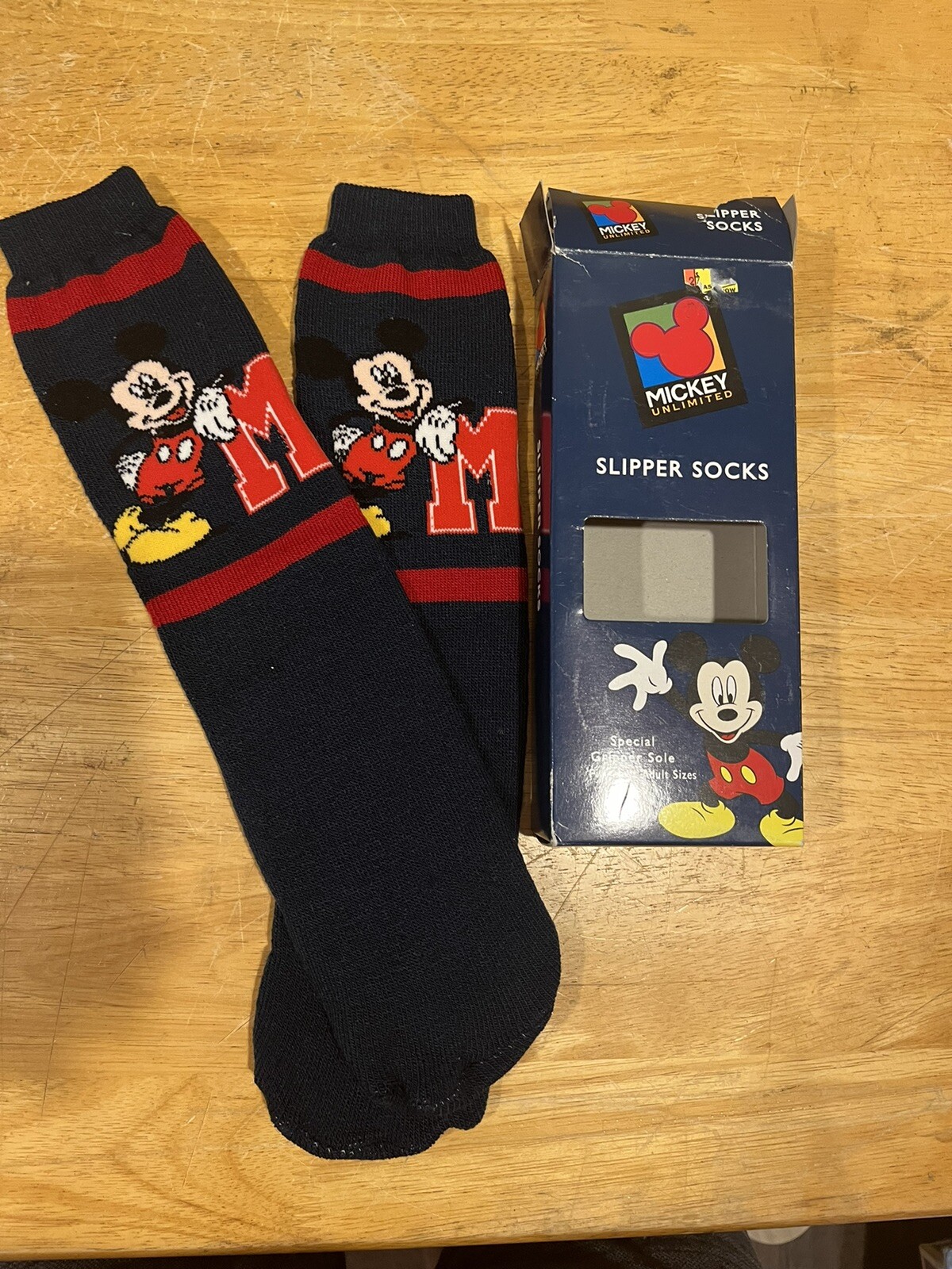 • Vintage Mickey Mouse Slipper Socks NIB Dark Blue Navy