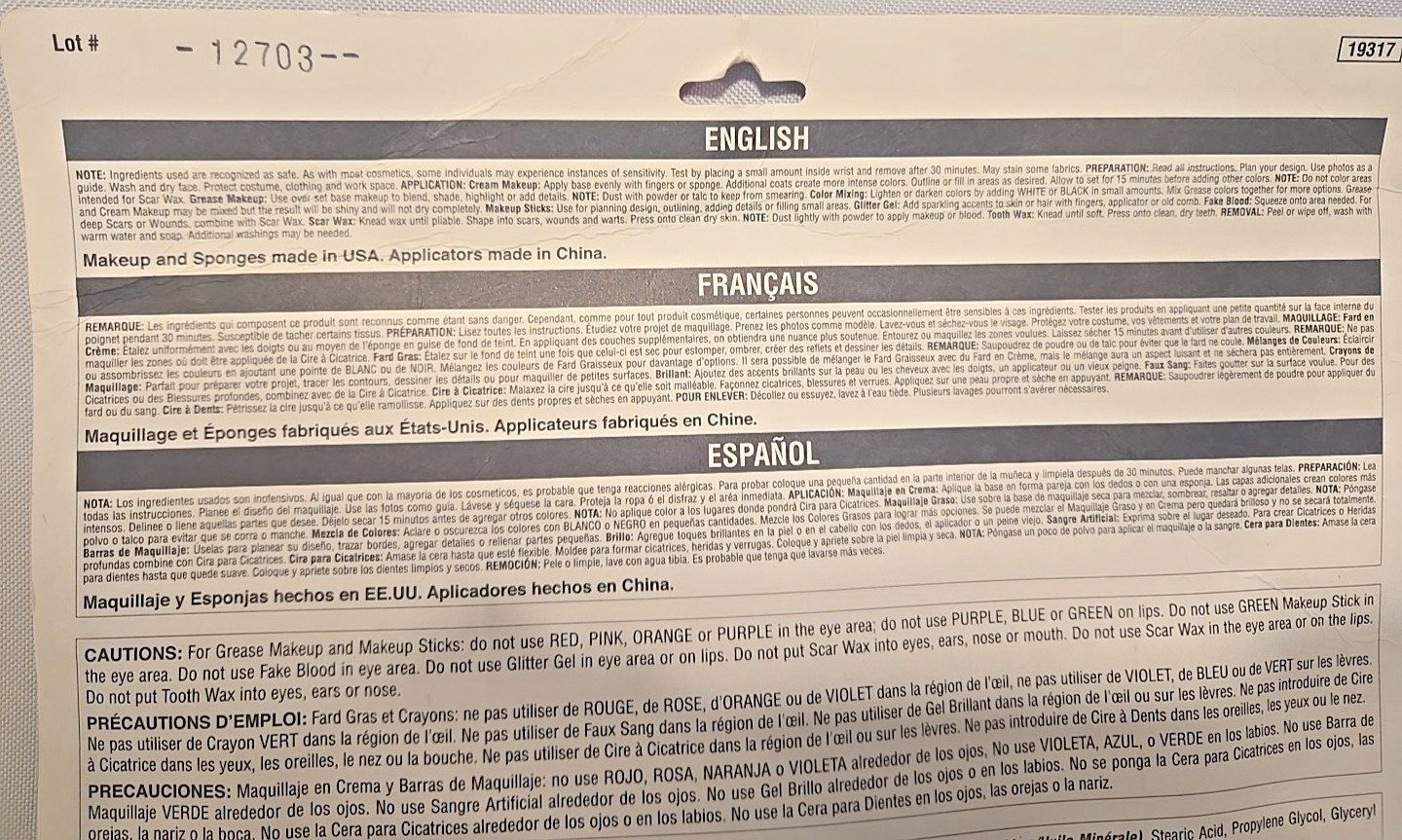 Rubies SUPER VALUE Makeup Kit package never opened