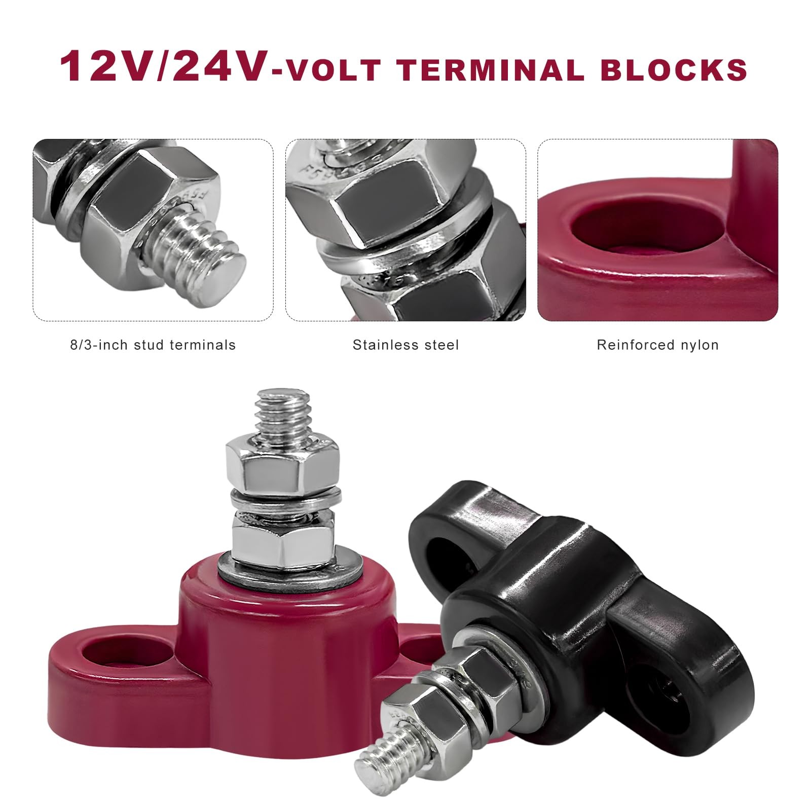 2PCS Car Single Stud Battery Junction Posts Block, 3/8 12V Power Ground Junc...