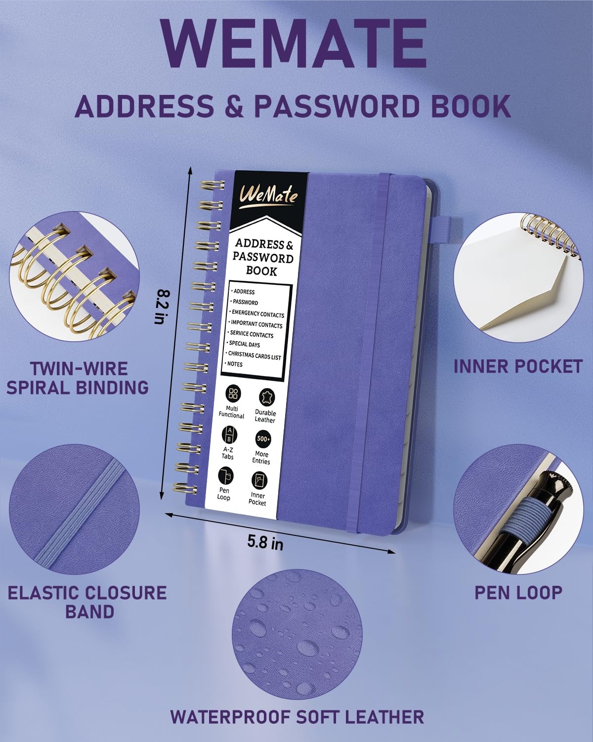 Spiral Address Book with Alphabetical Tabs, Leather Password Book, Address Or...