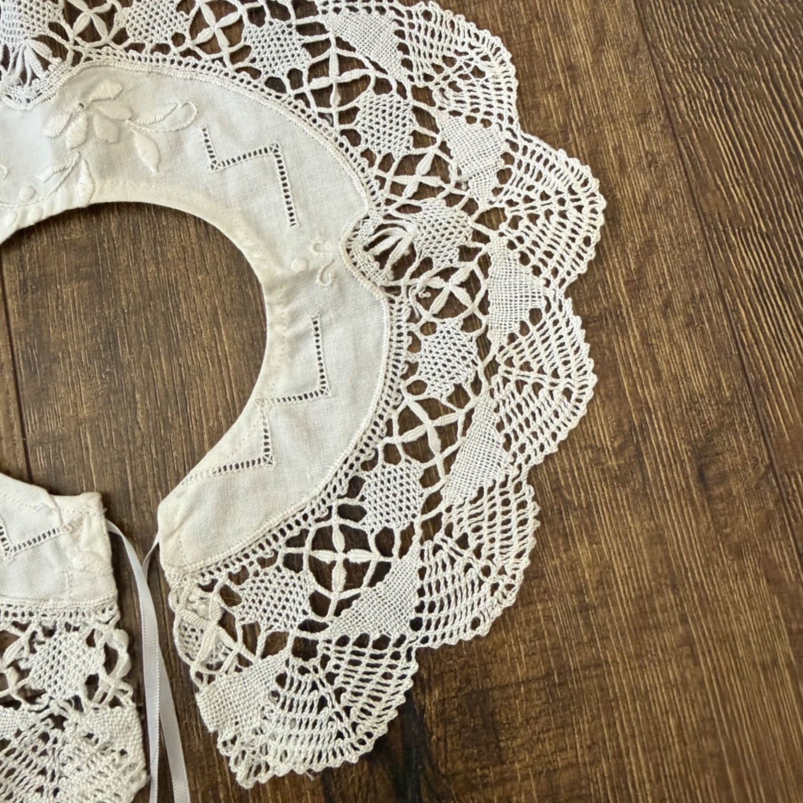 как выглядит Elegant Vintage Crochet Lace Linen Detachable Collar Jane Phelan Original фото