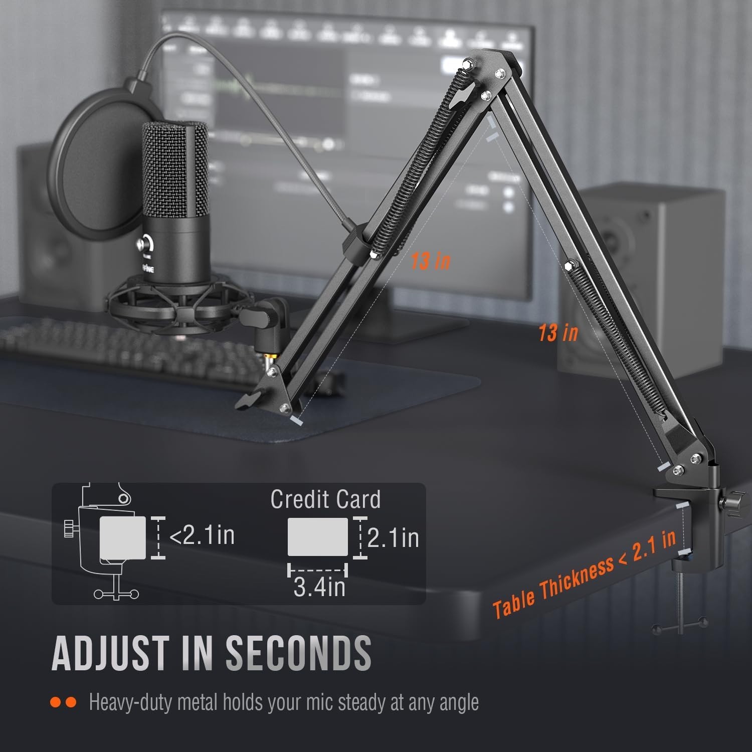 Studio Condenser Microphone Computer PC Microphone Kit with Adjustable Boom arm