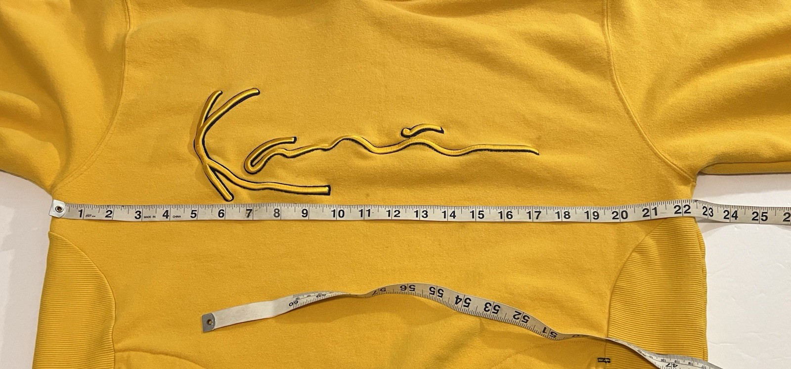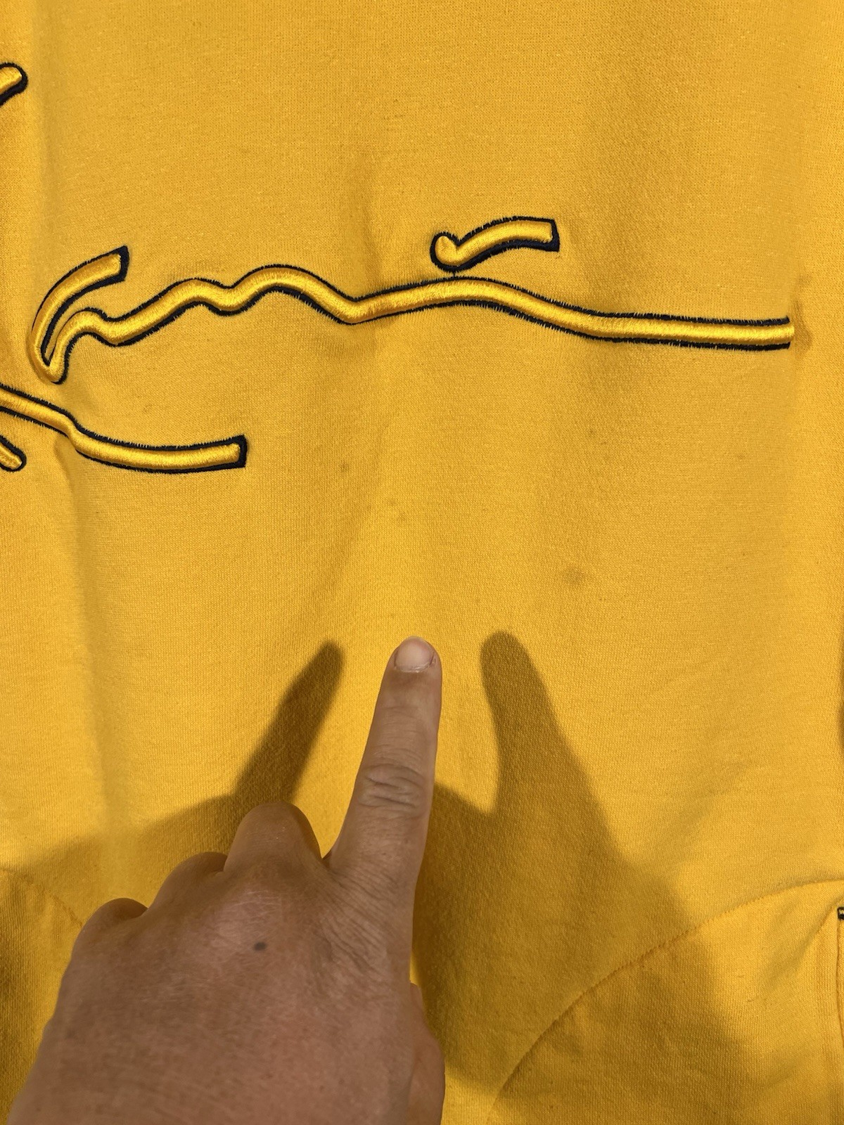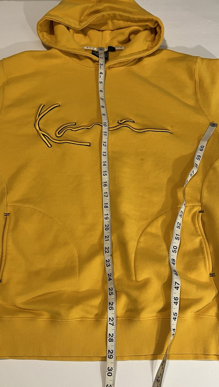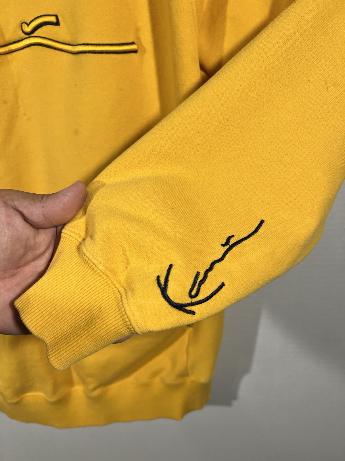 как выглядит VTG Karl Kani Jeans Signature Patch Hoodie Yellow Mens Sz L STREETWEAR HIP HOP фото