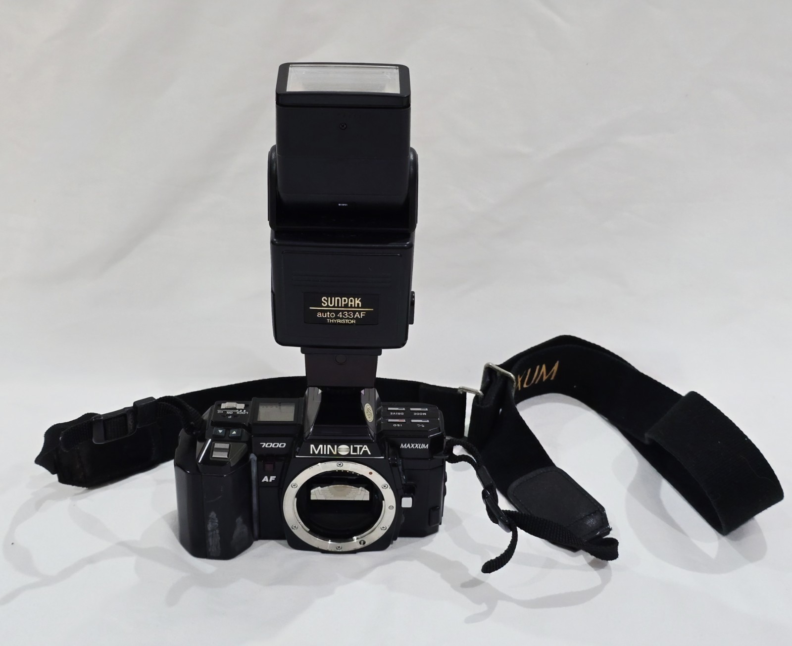 Minolta Maxxum 7000I 7000AF 35mm SLR Film Camera Body Only With Sunpak Flash