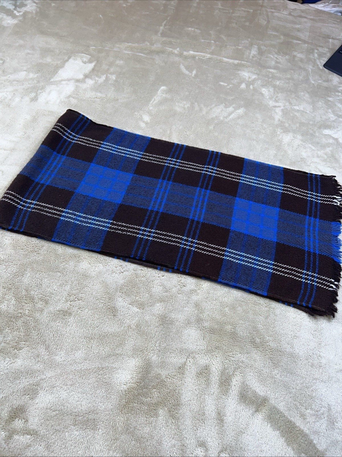 как выглядит Vintage Retro Soft Cozy Fringy Blue Brown White Plaid Scarf 46"x12" Classy фото