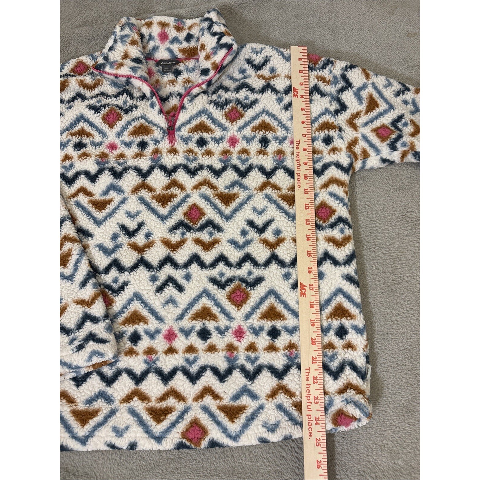 как выглядит Eddie Bauer Women Midweight Plush Faux Fur 1/4 Zip Fleece Pullover Aztec Large фото