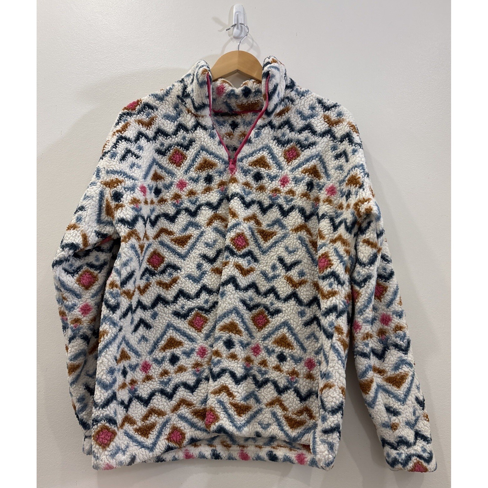Eddie Bauer Women Midweight Plush Faux Fur 1/4 Zip Fleece Pullover Aztec Large