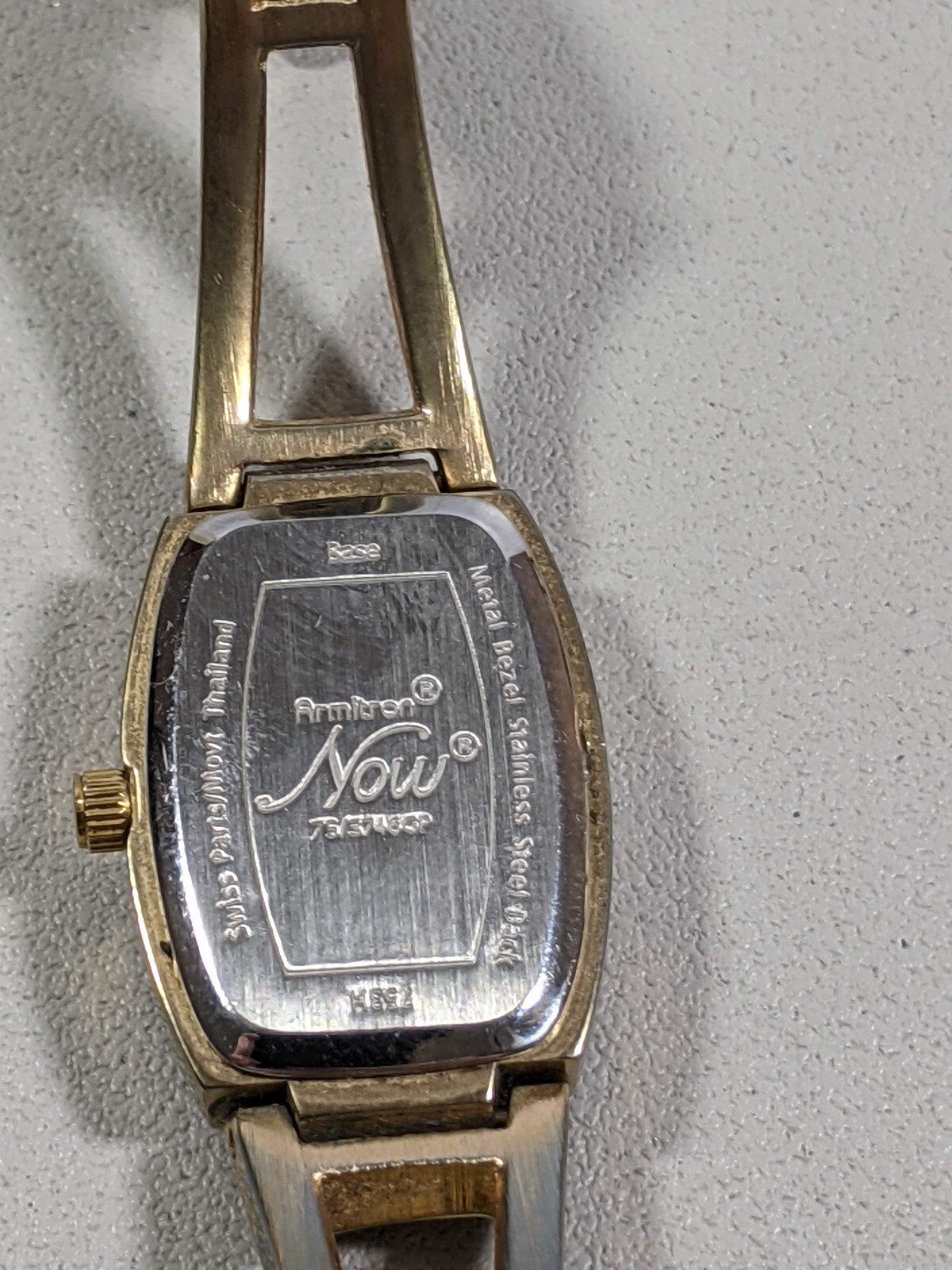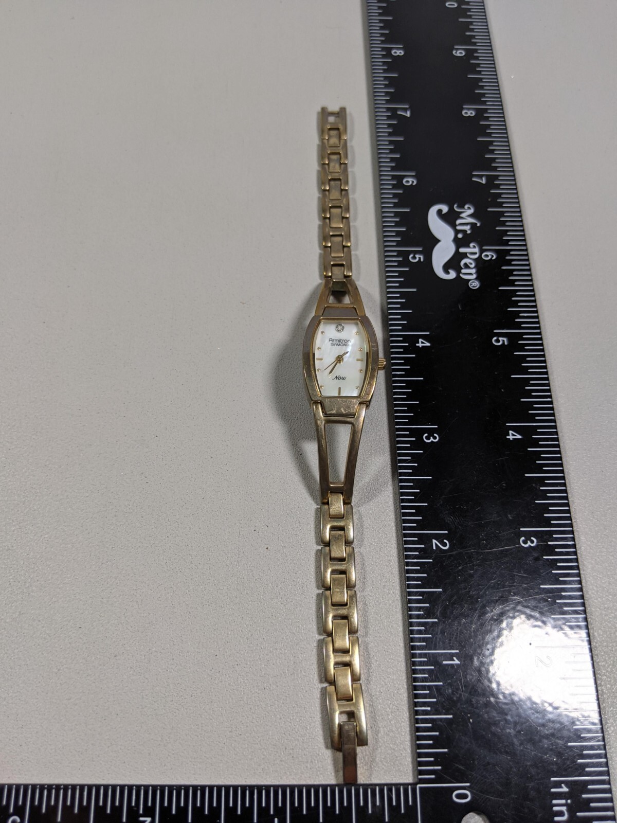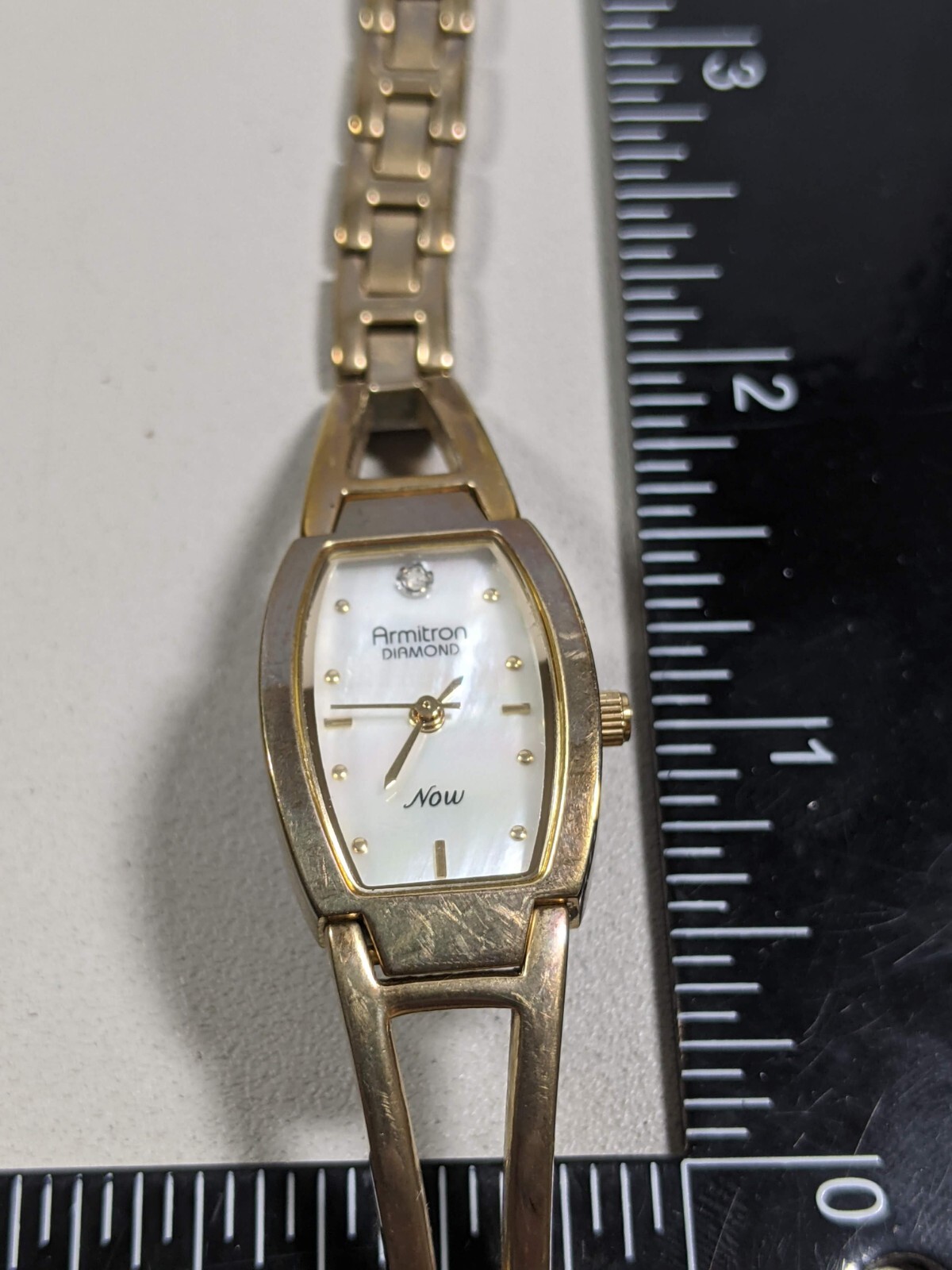 Armitron Diamond Now Pearlized Dial Gold Tone Cut Out Link Band Watch 7 Inch