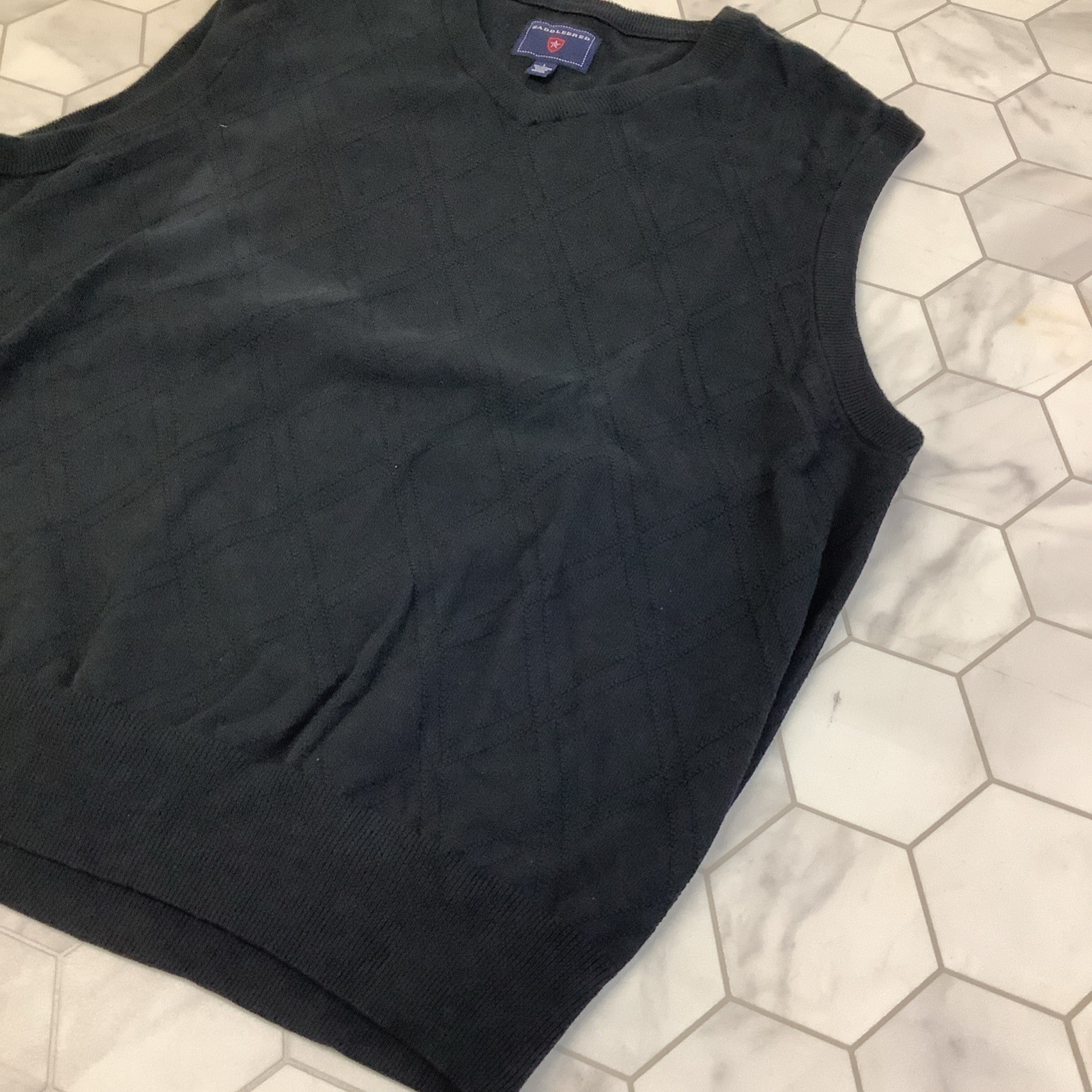 Saddlebred Men's Black Cotton Argyle Knit Sleeveless V-Neck Sweater Vest Size L