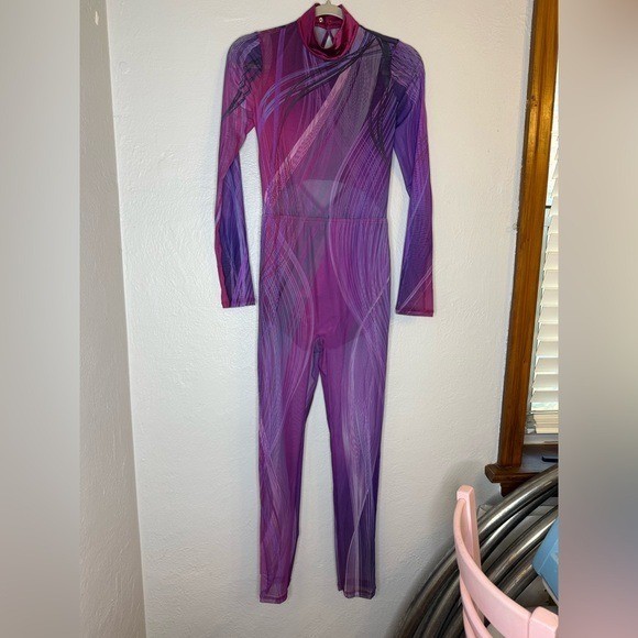 как выглядит Weissman Elite Mesh Unitard Fluid Lines Print Dance Costume NEW Size Adult Large фото