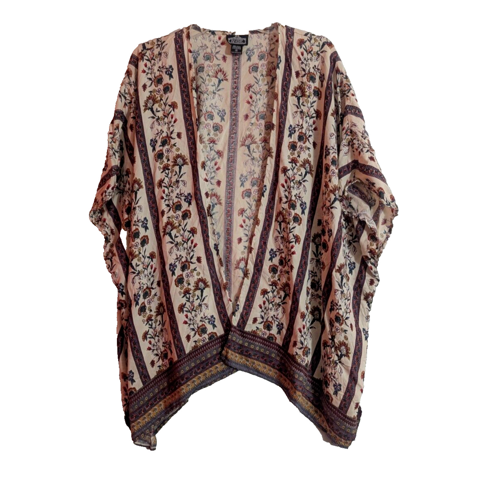 как выглядит Angie Multi Floral Boho Chic Kimono Top Medium H2 Boho Cottagecore Retro Poncho фото