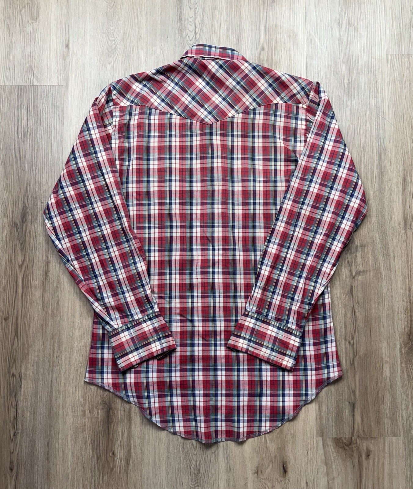 60s VINTAGE Wrangler Polycotton Rockabilly Snap Shirt Size Medium Plaid Cowboy